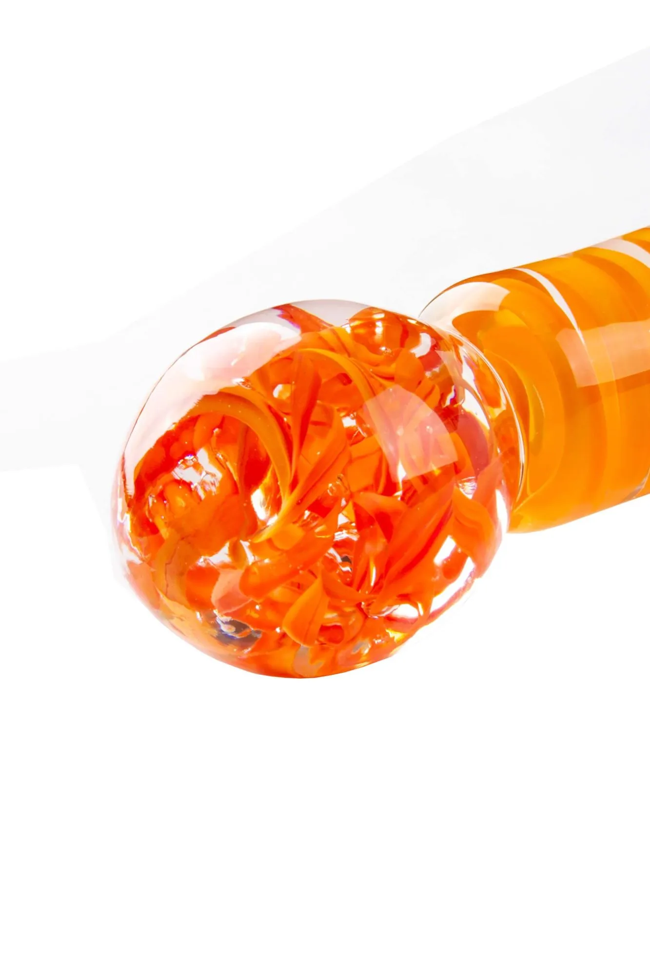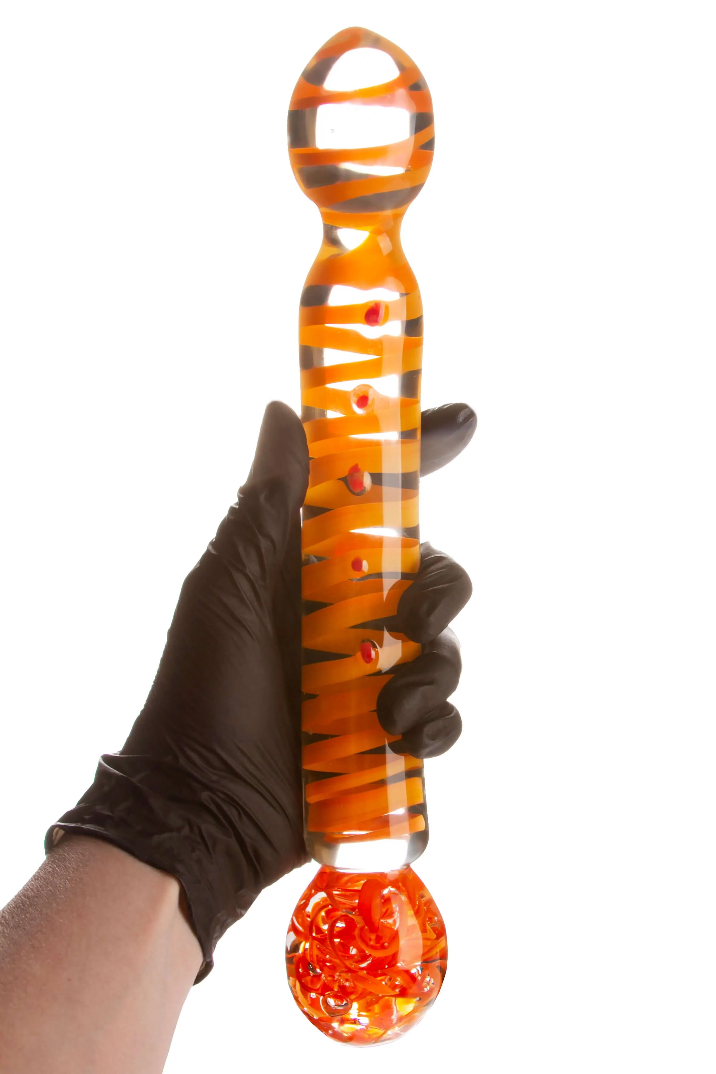 Стеклянный массажёр - это игрушка, имитирующая мужской половой орган. Стекло не меняет форму, не гнётся и быстро принимает температуру тела, что значительно увеличивает ощущения от использования. Предназначен для прелюдии, тренировок мышц влагалища, изучения эрогенных зон, компенсации преждевременной эякуляции партнёра.
