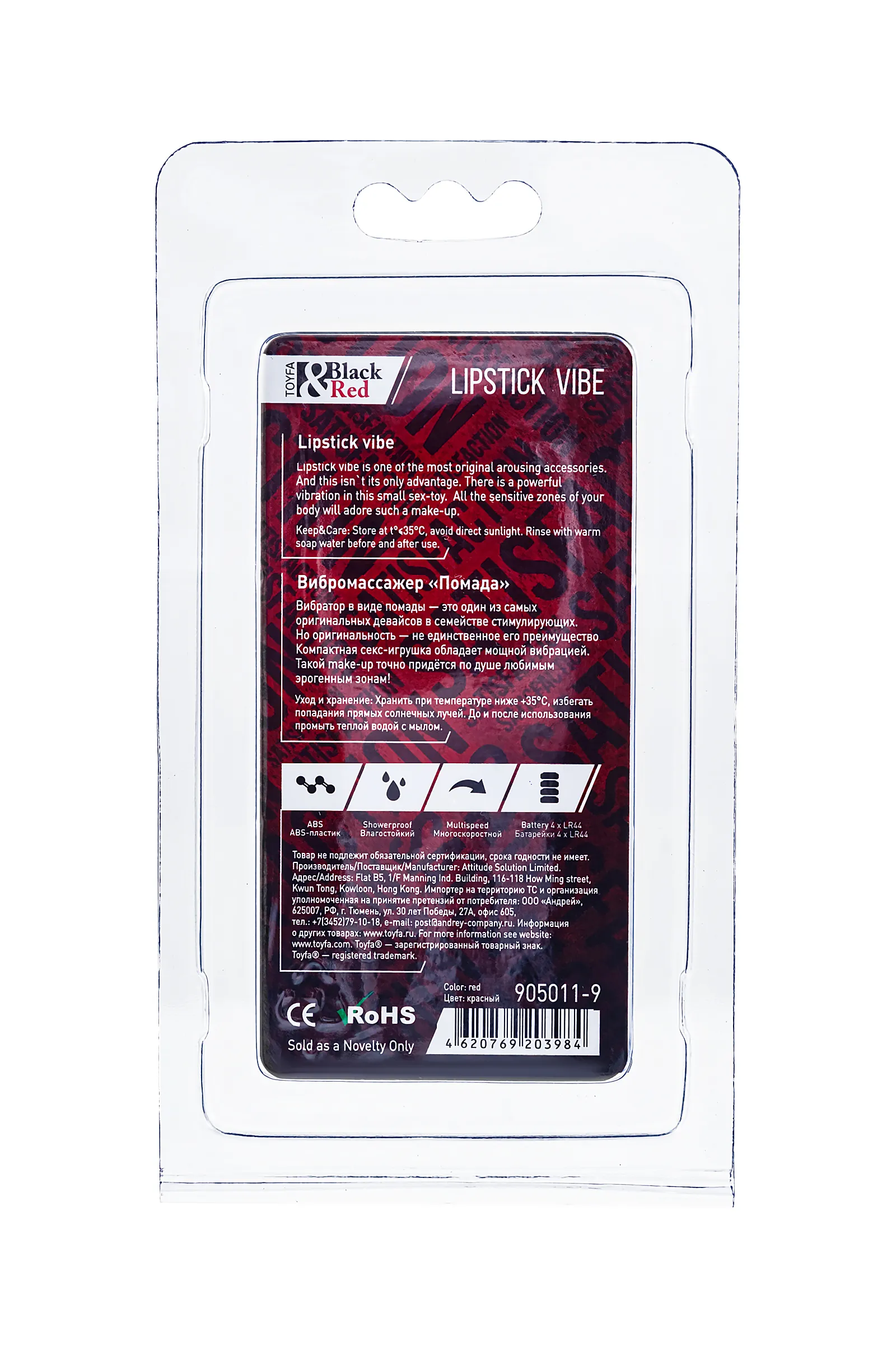 Вибромассажер Black&Red by TOYFA «Помада», силикон, красный, 9 см