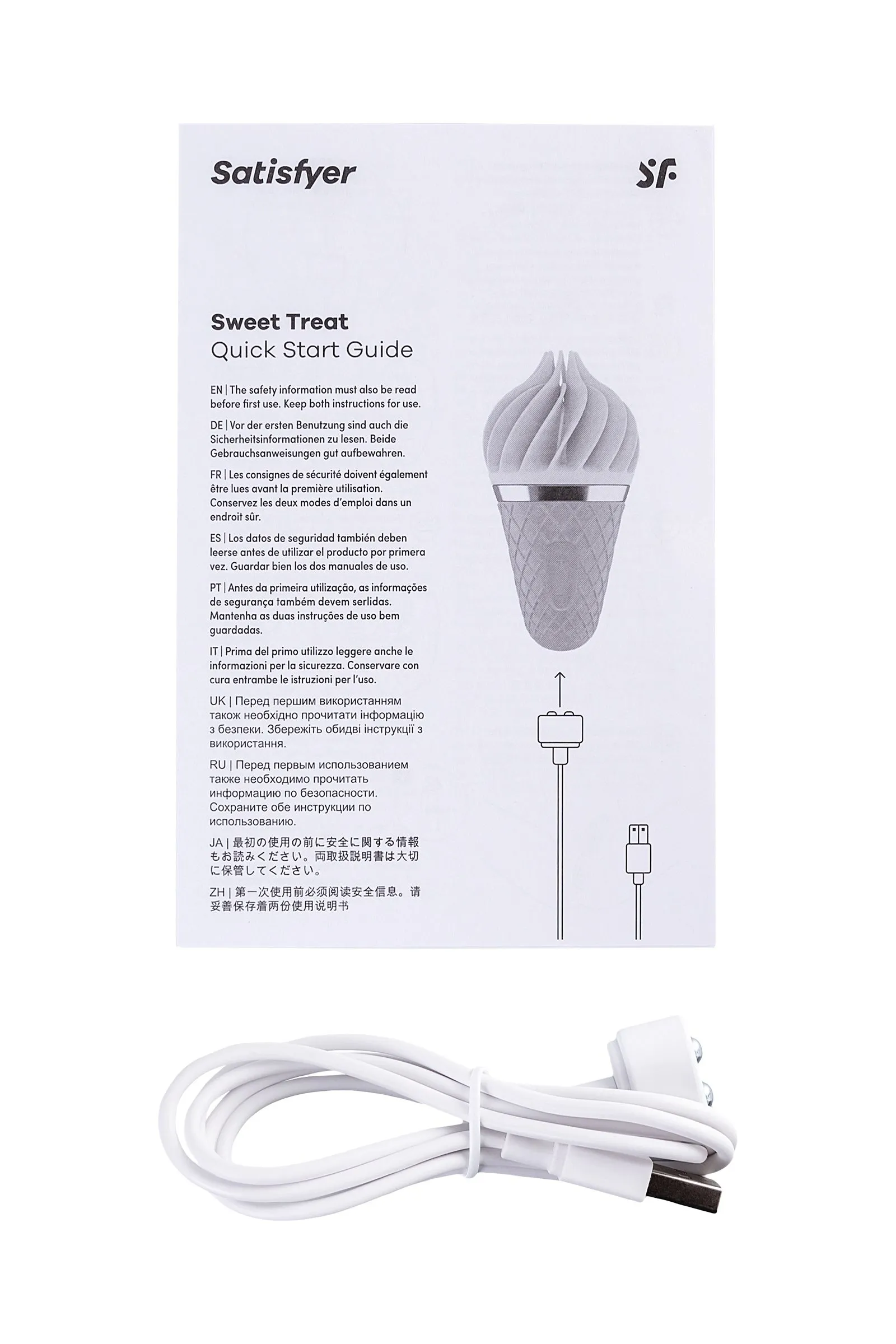 Красочный, лакомый и смелый — спиннатор Satisfyer layons Sweet Treat утоляет жажду наслаждения словно холодное мороженое в жаркий летний день. Очаровательный дизайн в виде вафельного рожка и большая мощность вращения делают этот вибратор украшением даже самой потрясающей коллекции игрушек. Закругленный кончик Sweet Treat состоит из нежных заостряющихся лепестков, которые ласкают клитор так, будто хотят, чтобы вы растаяли в неге блаженства. Обольстительные программы из 4-х ритмов и 3-х скоростей вращения в каждую сторону провоцируют на громкие стоны. А полностью водонепроницаемая поверхность призывает устроить релакс-программу в бодрящем душе или расслабляющей ванне. Неважно, дадите ли вы своему источнику наслаждения выступить в роли солиста или воспользуетесь им для совместной прелюдии с партнером — в любом случае Satisfyer Layon Treat станет лучшим десертом, который вы когда-либо пробовали. Бесшумный режим работы помогает держать в секрете свои шалости Полная водонепроницаемость гарантирует безопасность использования в воде Гипоаллергенный силикон не вызывает раздражений на коже 15 лет гарантии Не отказывайте себе в сладком удовольствии, поддайтесь на заигрывания Sweet Treat.