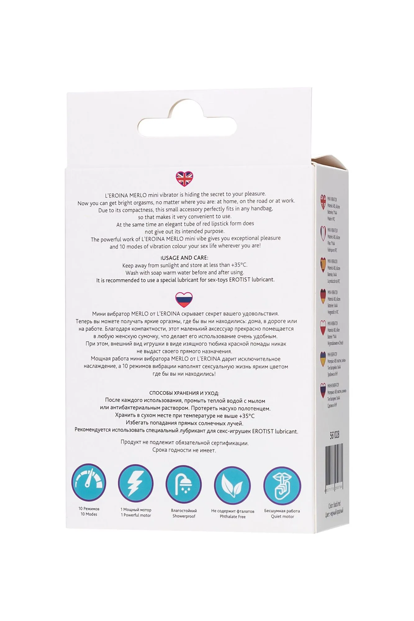 —Минивибратор L'Eroina Merlo, ABS пластик, черный, 10,5 см