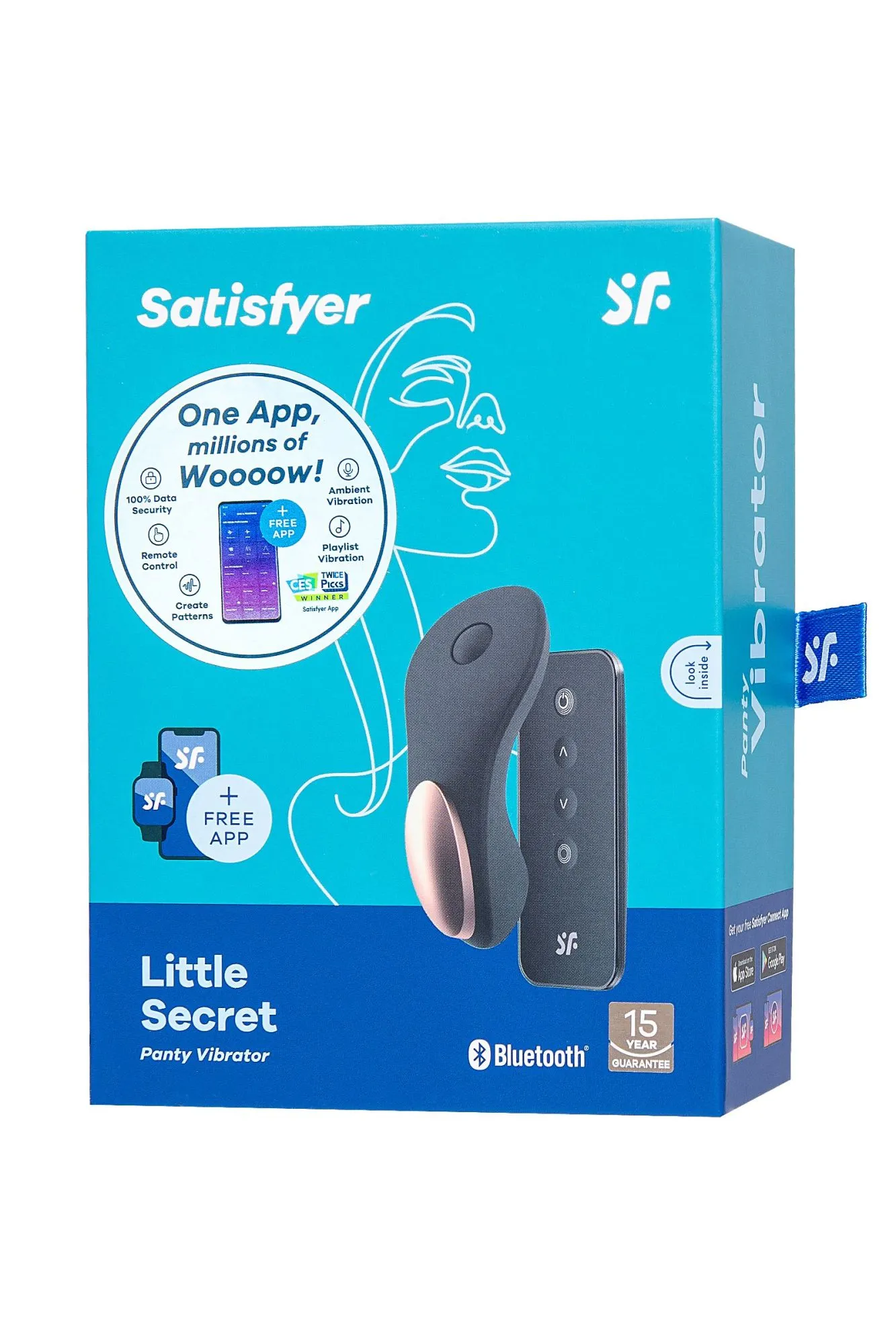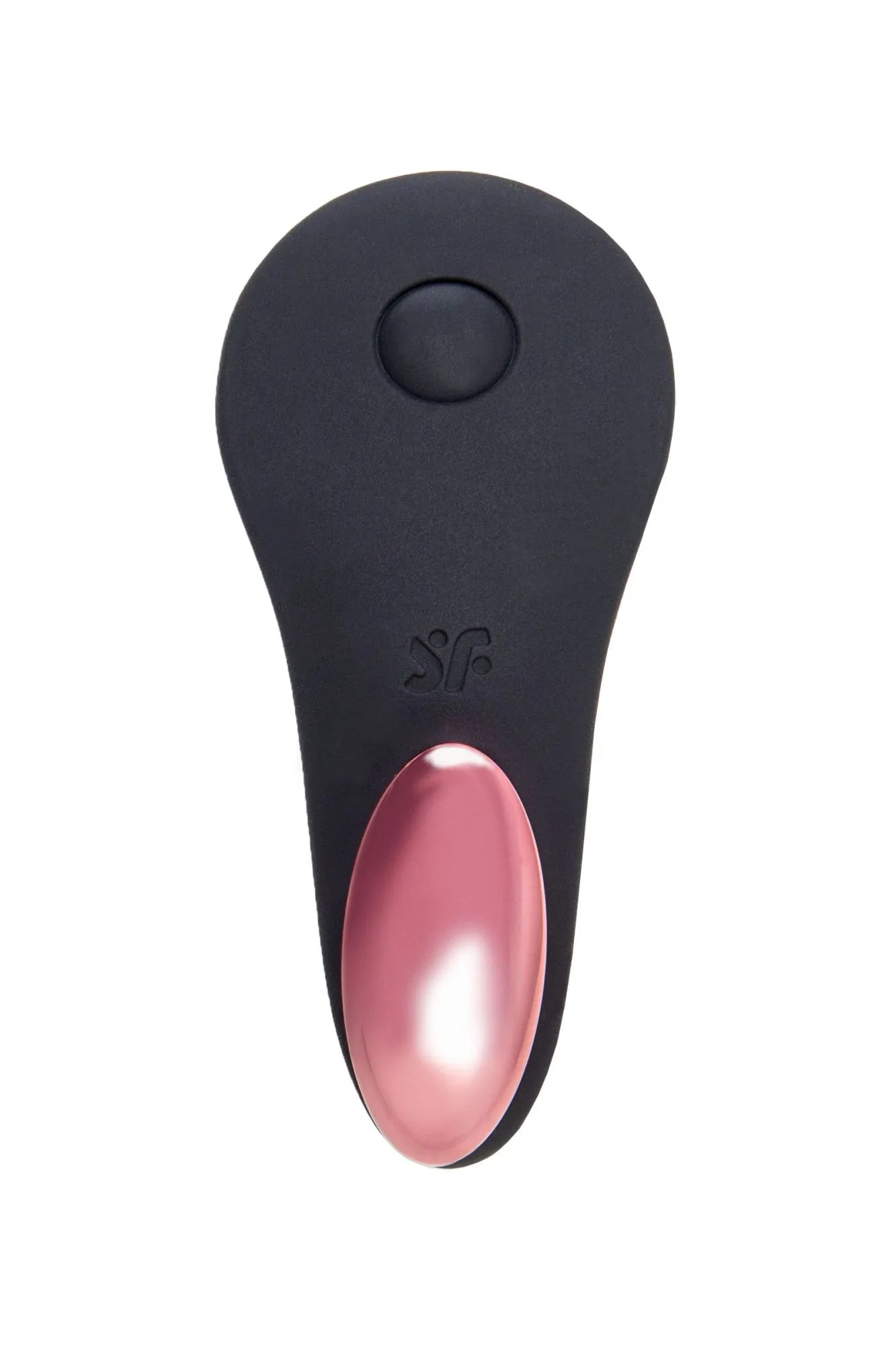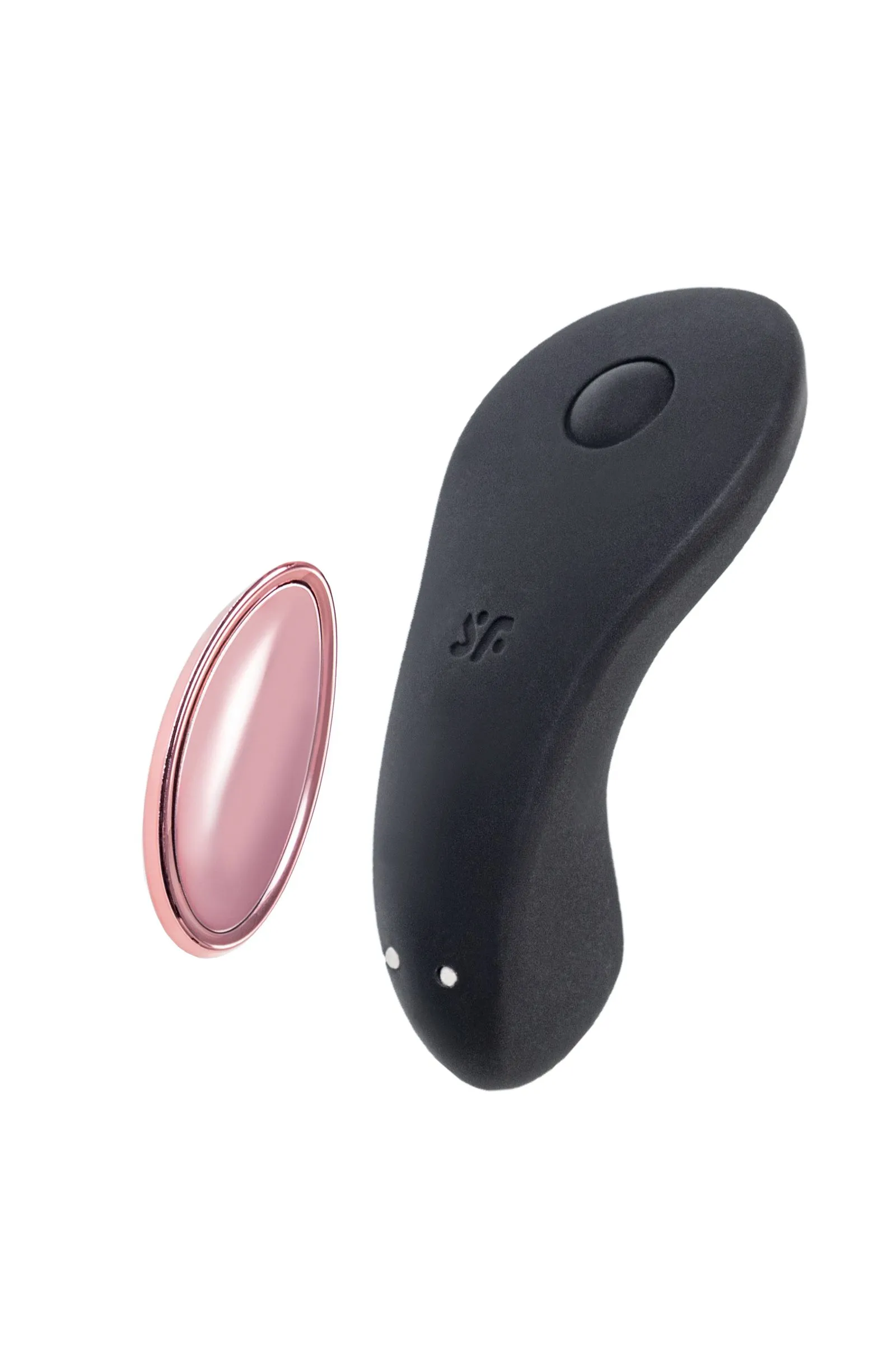 Little Sexy Secret - компактный и удобный вибростимулятор в трусики с дистанционным управлением. Клиторальный стимулятор крепится к трусикам с помощью магнита и надежно удерживается на месте. Каждый изгиб повторяет форму интимной зоны и прицельно стимулирует область клитора и входа во влагалище. Несмотря на миниатюрные размеры, игрушка обладает мощной низкочастотной глубинной вибрацией. Это значит что воздействие на эрогенные зоны может быть, как интенсивным, так и мягким. Преимуществом игрушки также является тихий мотор, что позволяет использовать вибромассажер незаметно от окружающих в любом месте. Дистанционное управление с помощью приложения или пульта расширяет возможности сексуальной игры. Передайте управление партнеру, даже если вы находитесь на разных уголках планеты. Специальное приложение Satisfyer Connect предлагает создать собственные уникальные плейлисты вибрации. Настраивайте их под любимые музыкальные треки. А защищенное соединение Bluetooth обеспечивает повышенную безопасность, предотвращая другие сигналы и гарантируя надежность коннекта. Высококачественный безопасный силикон и безупречный дизайн в оформлении насыщенного черного и золотого цвета вызывает удовольствие от каждого прикосновения. Не забудьте добавить лубрикант на водной основе для еще более комфортного использования. Little Sexy Secret не боится влаги и получать удовольствие с ним можно даже в воде. Очищать игрушку желательно до и после использования. Можно помыть в теплой воде с мылом или воспользоваться специализированным чистящим средством. Перед хранением вибромассажер необходимо хорошо просушить. Желательно хранить отдельно от других силиконовых изделий. 10 режимов интенсивности с возможностью управления с помощью кнопки на вибромассажере, пульта и через бесплатное приложение Satisfyer Connect, доступного для iOS и Android Надежный гарантия 15 лет Инновационные технологии – дистанционное управление с возможностью создания собственных уникальных ритмов. Безопасный и гигиеничный медицинский силикон Бесшумный – о шалостях никто не узнает Красивый и удобный – стильный дизайн и эргономичная форма Водонепроницаемость IPX7 – новые возможности в удовольствии в душе и ванной Магнитная USB-зарядка – время зарядки 90 минут, время работы 180 минут Страна бренда – Германия