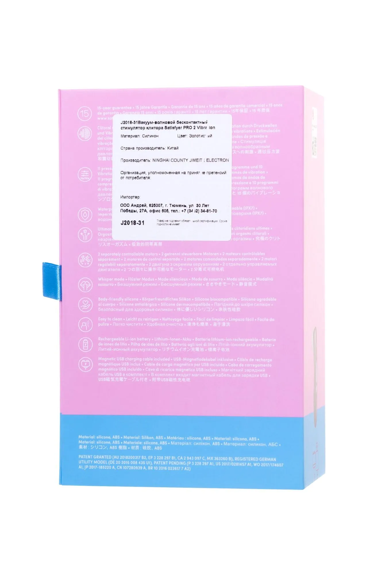 Остановитесь прямо сейчас, ваш поиск наслаждения окончен. Satisfyer Pro 2 Vibration - абсолютный хит в сверхмощных оргазмах. Стоит только приложить носик игрушки к клитору, как очередь из бурных интенсивных оргазмов выстроится друг за другом. В вашем распоряжении 11 программ различных бесконтактных настроек и 10 вариантов вибрации. Представьте какое количество вариаций вы можете позволить себе! Благодаря Satisfyer культ оргазма от бесконтактной стимуляции стал доступен абсолютно любой женщине! Ощущения от воздушной пульсации и вибрации, посылаемые в эрогенную зону мембраной игрушки, не сравнятся с ласками самого восхитительного любовника. А в воде вам откроется нечто новое и несравнимое благодаря водонепроницаемости уровня IPX7. Прост в уходе, легок в обращении и подзаряжается от магнитной USB зарядки - Satisfyer Pro 2 Vibration нацелен на удовольствие без преград. 11 скоростей вакуум-волновой стимуляции 10 режимов вибрации 2 сверхмощных мотора Водонепроницаемость IPX7 Благородный цвет розового золота Безопасный медицинский силикон и прочный пластик ABS Производитель Германия