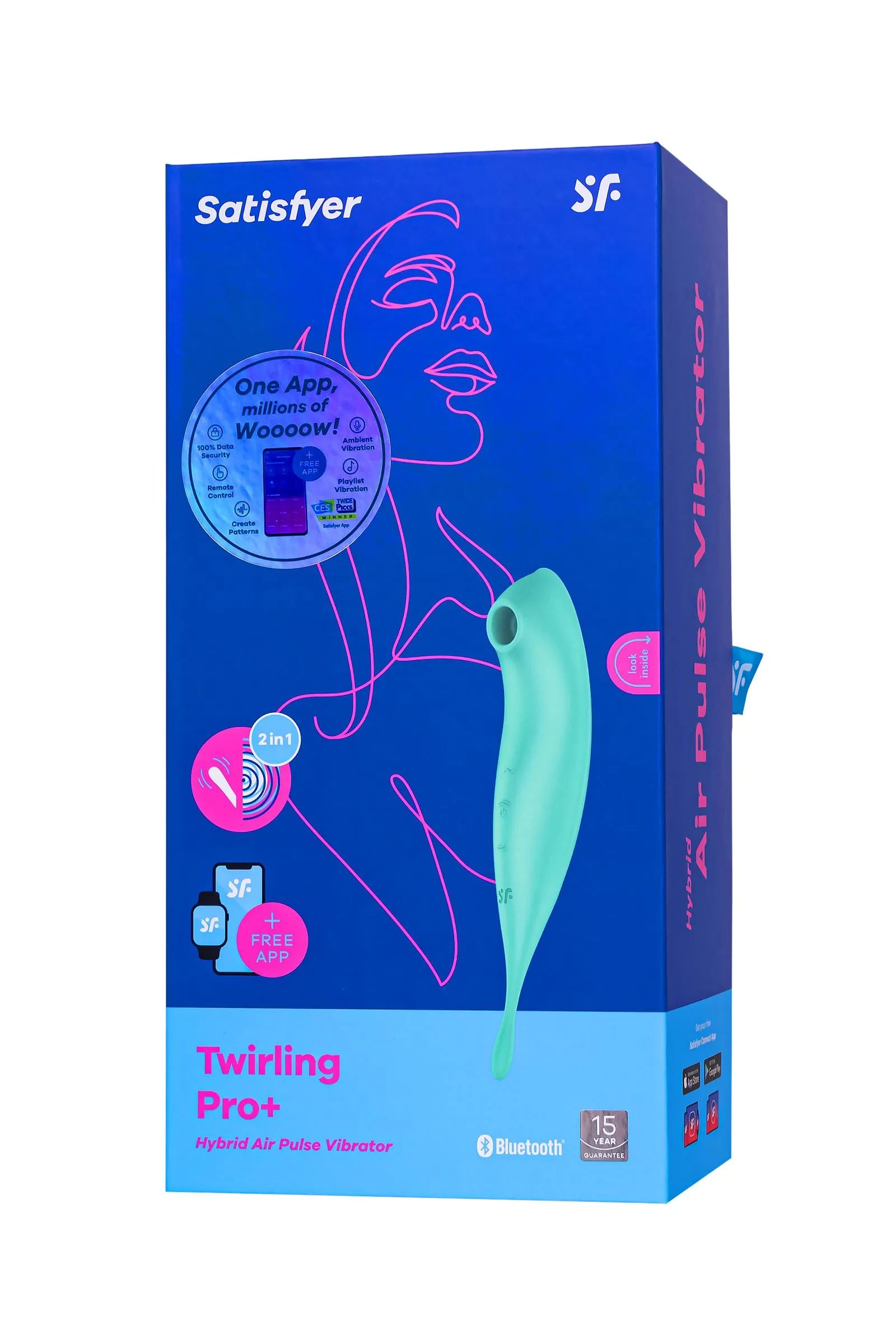 Нежнейшая клиторальная стимуляция и дразняще-вибрирующий наконечник: знакомьтесь, это новинка от Satisfyer двусторонний Twirling pro. С одной стороны игрушки раструб для клитора, воздействующий на сокровенное воздушными волнами. Twirling pro обладает 11 режимами интенсивности, по которым как по ступенькам вы пройдете от чувственных ласк до умопомрачительного оргазма. С другой стороны удлиненный кончик совершает циркулирующие точечные движения в разнообразных паттернах вибрации, которых имеется 12 режимов. Деликатное воздействие на все известные и еще неизвестные эрогенные зоны обеспечивает овальная форма упругого наконечника. Легкие щекочущие ощущения или максимально интенсивные прикосновения, которые вам предстоит испытать на пути неземного блаженства. Twirling pro обладает двумя мощными надежными моторами, работающими отдельно друг от друга. Продолговатая каплевидная форма игрушки благодаря изгибам удобно лежит в руке. Интуитивно понятное управление тремя кнопками прямо на корпусе игрушки продуманы и ложатся точно под пальчики. Интимный гаджет поддерживает управление при помощи смартфона через приложение Satisfyer Connect, доступное на Android и iOS, что существенно расширяет возможности предустановленных режимов. Вы можете также проявить фантазию и создавать свои собственные, уникальные режимы стимуляции. Девайс поддерживает режим преобразования звуков в вибрацию, поэтому он способен вибрировать даже в такт музыке. Но и это не все - приложение для смартфона имеет функцию чата и даже позволяет передать управление игрушкой другому человеку дистанционно. Satisfyer Connect не имеет границ – в настоящее время поддерживается более 25 языков. Интегрированные функции чата / звонка и видеовызова гарантируют приятное интимное общение. Шелковистое силиконовое покрытие — фирменный знак Satisfyer, тактильно нежный и приятный на ощупь. Twirling pro позаботится о самых чувственных прикосновениях даже в ванной и душе. Благодаря водонепроницаемости IPX7 игрушку можно погружать под воду до 30 минут. Чтобы получить максимум удовольствия и сохранить материал в наилучшем виде, рекомендуется пользоваться качественной смазкой на водной основе. После использования обязательно очищайте стимулятор теплой водой со специальными бактерицидными спреями для интимных товаров. Особенности: Вибрирующий наконечник для точечной стимуляции эрогенных зон и раструб с воздушной пульсацией для клитора. Простое управление отдельными моторами двумя кнопками. 12 режимов вибрации и 11 режимов волновой стимуляции. Нежный мятный цвет и мягкий, эластичный силикон без запаха, без аллергенов и вредных для здоровья веществ. 100% водонепроницаемый - IPX7. Время работы 60 минут. Перезаряжаемый, магнитный USB-кабель, время зарядки 240 минут. 15 лет гарантии от производителя.