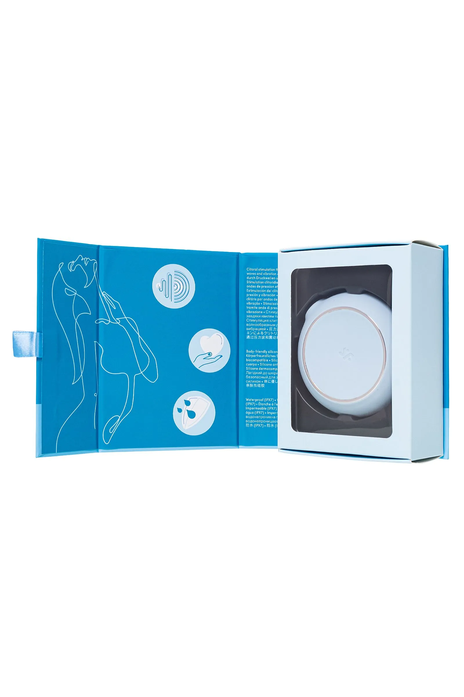 Один из самых стильных любовников для чувственных оргазмов – Pro To Go 3 от Satisfyer в нежно голубом цвете и дизайне, далеком от классических интимных игрушек. Компактный вибратор для наружной стимуляции клитора обладает двумя автономными моторами. Комбинируйте воздушную пульсацию и проникающие волны вибрации, чтобы достигать неземного блаженства каждый раз. Бесконтактная стимуляция клитора – новейшая запатентованная технология Air Pulse для женских оргазмов. В вашем распоряжении 11 уровней интенсивности вакуум-волновой стимуляции и 12 программ вибрации – от нежной до интенсивной. Интуитивно понятное управление с помощью трех кнопок на корпусе. Стильный дизайн Pro To Go 3 напоминает компактную пудреницу или гаджет для красоты, и превосходно лежит в ладони. При этом вибрация в корпусе значительно менее ощутима, чем в основной контактной части. Идеальный размер и форма, чтобы брать любимый стимулятор в дорогу. Стильный и качественный гаджет создан для эстетического и сексуального удовольствия. Потрясающий шелковистый на ощупь высококачественный гипоаллергенный силикон – визитная карточка бренда Satisfyer. Поверхность раструба мягко и деликатно стимулирует клиторальную область. Тактильно нежный и приятный на ощупь силикон быстро адаптируется к температуре вашего тела. Чтобы получить максимум удовольствия и сохранить материал в наилучшем виде, рекомендуется пользоваться качественной смазкой на водной основе. После использования обязательно очищайте вибратор теплой водой со специальными бактерицидными спреями для интимных товаров. Благодаря водонепроницаемости дарить себе удовольствие можно даже принимая ванну или душ. Особенности: Возможность одновременного воздействия на клитор воздушной пульсацией и вибрацией Управление кнопками на корпусе. 12 режимов вибрации и 11 режимов волновой стимуляции. Нежный голубой цвет и мягкий, эластичный силикон без запаха, без аллергенов и вредных для здоровья веществ. 100% водонепроницаемый - IPX7. Перезаряжаемый, USB-кабель.