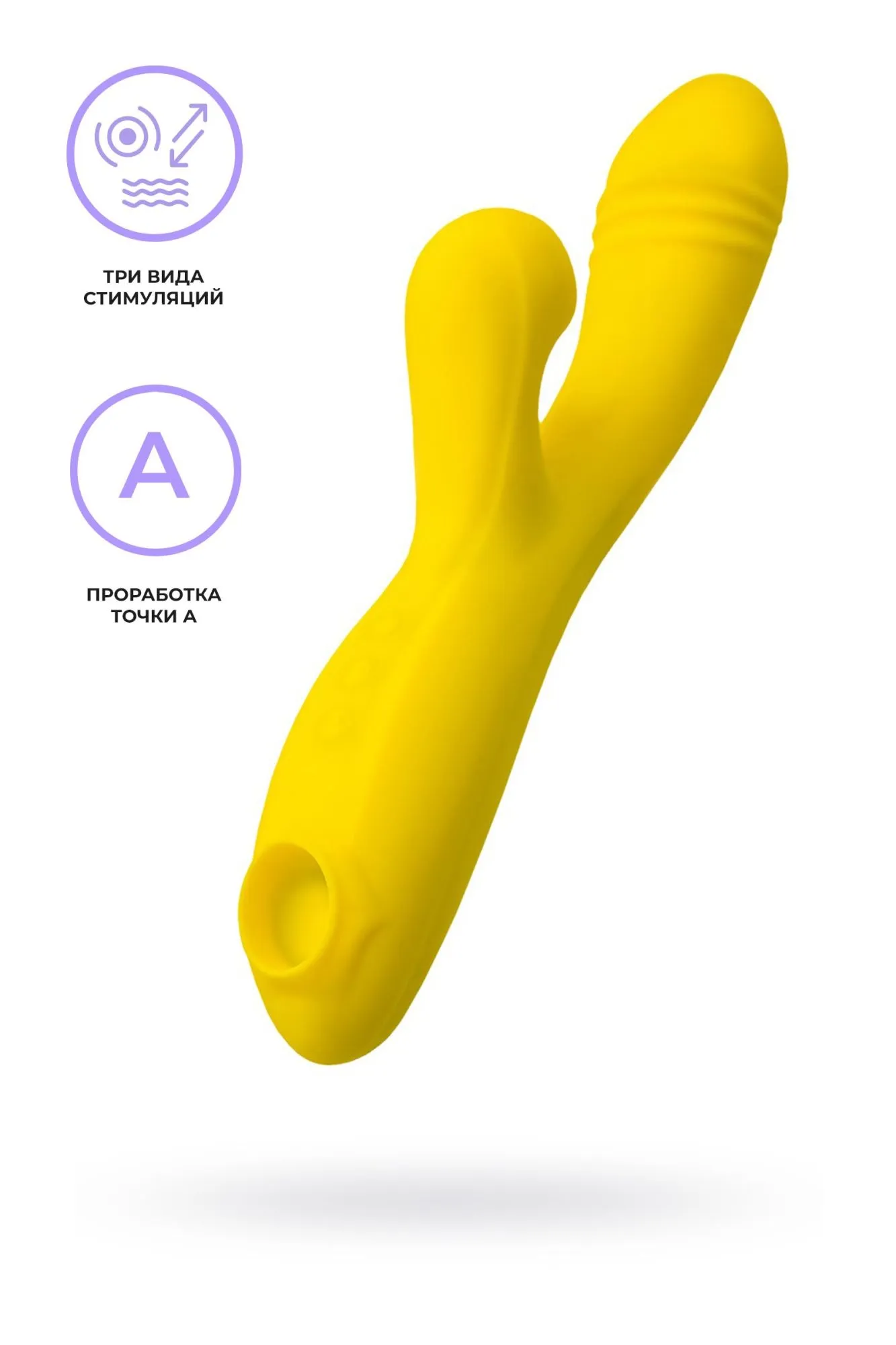 MIA знает о Твоих желаниях все! Этот водонепроницаемый технологичный вибратор объединил в себе функционал сразу нескольких девайсов. Он имеет не только миловидную внешность, нежный солнечный цвет и бархатистую поверхность, но и отлично справляется со стимуляцией внешних и внутренних эрогенных зон. В нем 3 мотора, которые подарят Тебе 10 режимов вибрации основной части, 10 режимов вибрации «язычка» и 7 вариантов вакуумных стимуляций. MIA легко управляется нажатием кнопок, Тебе лишь остается выбрать функционал под настроение и понравившийся режим. Никогда еще чувственное наслаждение не было столь продуманным и качественным, поэтому смело отправляйся с технологичным MIA в головокружительное путешествие к новым сексуальным высотам!
