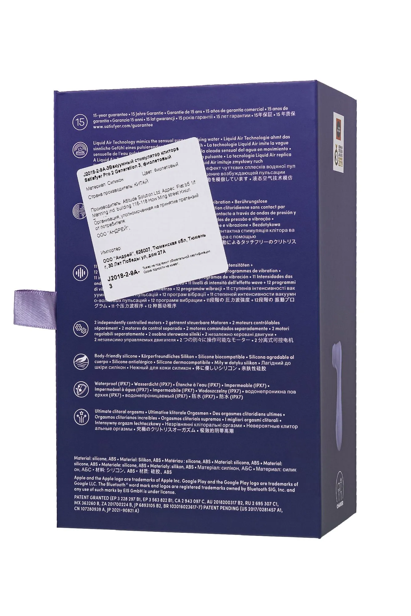Вакуумный стимулятор клитора Satisfyer Pro 2 Generation 3, фиолетовый, 16,4 см