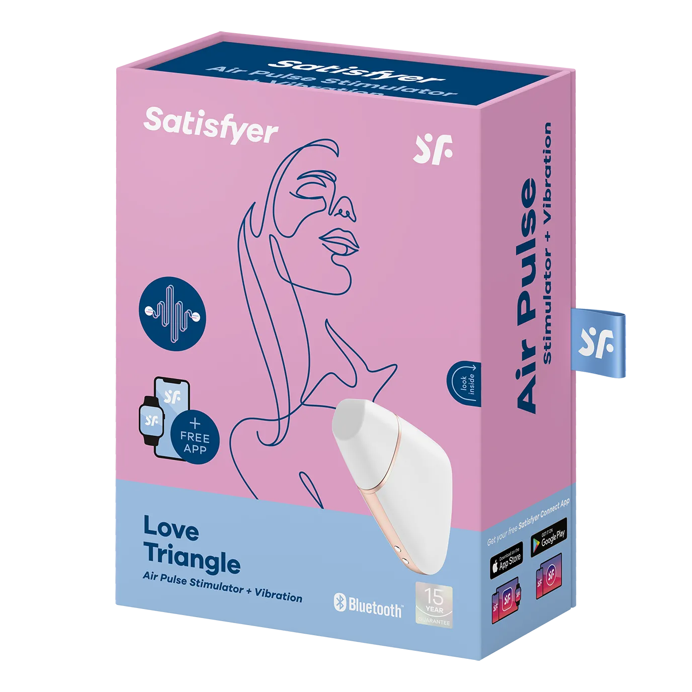 Вакуумный вибромассажер Satisfyer Love Triangle сочетает в себе функции вибратора и вакуумного стимулятора. Имеет 10 режимов вибрации и 11 режимов вакуумной стимуляции, которые могут работать как вместе, так и раздельно. Работает от аккумулятора, и заряжается от магнитного зарядного устройства (идет в комплекте). Вакуумный стимулятор оснащен системой Bluetooth, и управление может осуществляться через бесплатное мобильное приложение Satisfyer, либо кнопками на устройстве. Общая длина стимулятора составляет 10 см. Внутренний диаметр насадки- 1,5 см. Водонепроницаемый, соответствует международным стандартам IPX7.