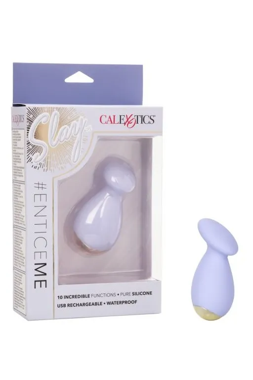 Slay #EnticeMe – перезаряжаемый мульти скоростной миниатюрный вибромассажер. Благодаря ярко-выраженной плоской, словно блинчик, головке идеально подходит для целенаправленной стимуляции самых чувствительных мест. Бесшумный двигатель вибратора обеспечивает 10 различных функций вибрации, пульсации и эскалации.