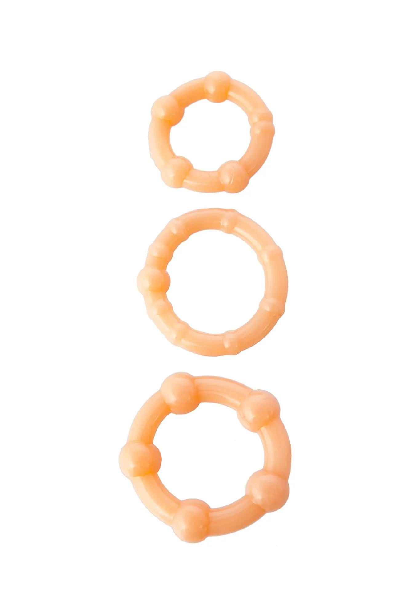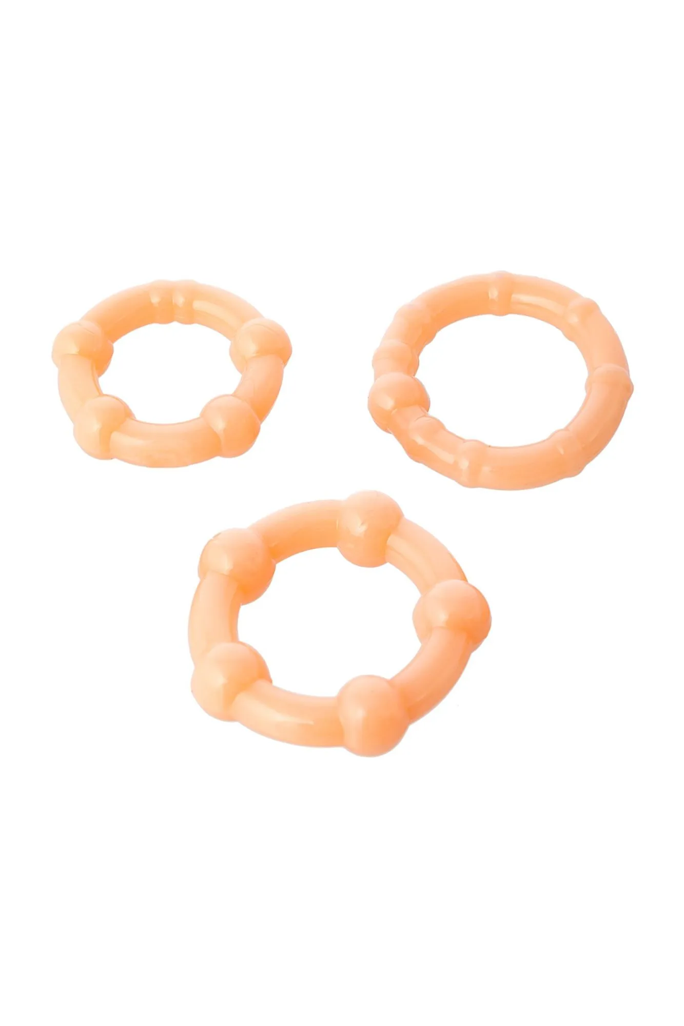 Этот набор состоит из трёх рельефных эрекционных колец. Его основное предназначение — продлевать интимную близость. Но шишечки разного диаметра легко справляются с ещё одной функцией — дарят превосходную стимуляцию обоим партнёрам. Вот почему сексуальные игры с этим набором колец становятся любимым времяпрепровождением!
