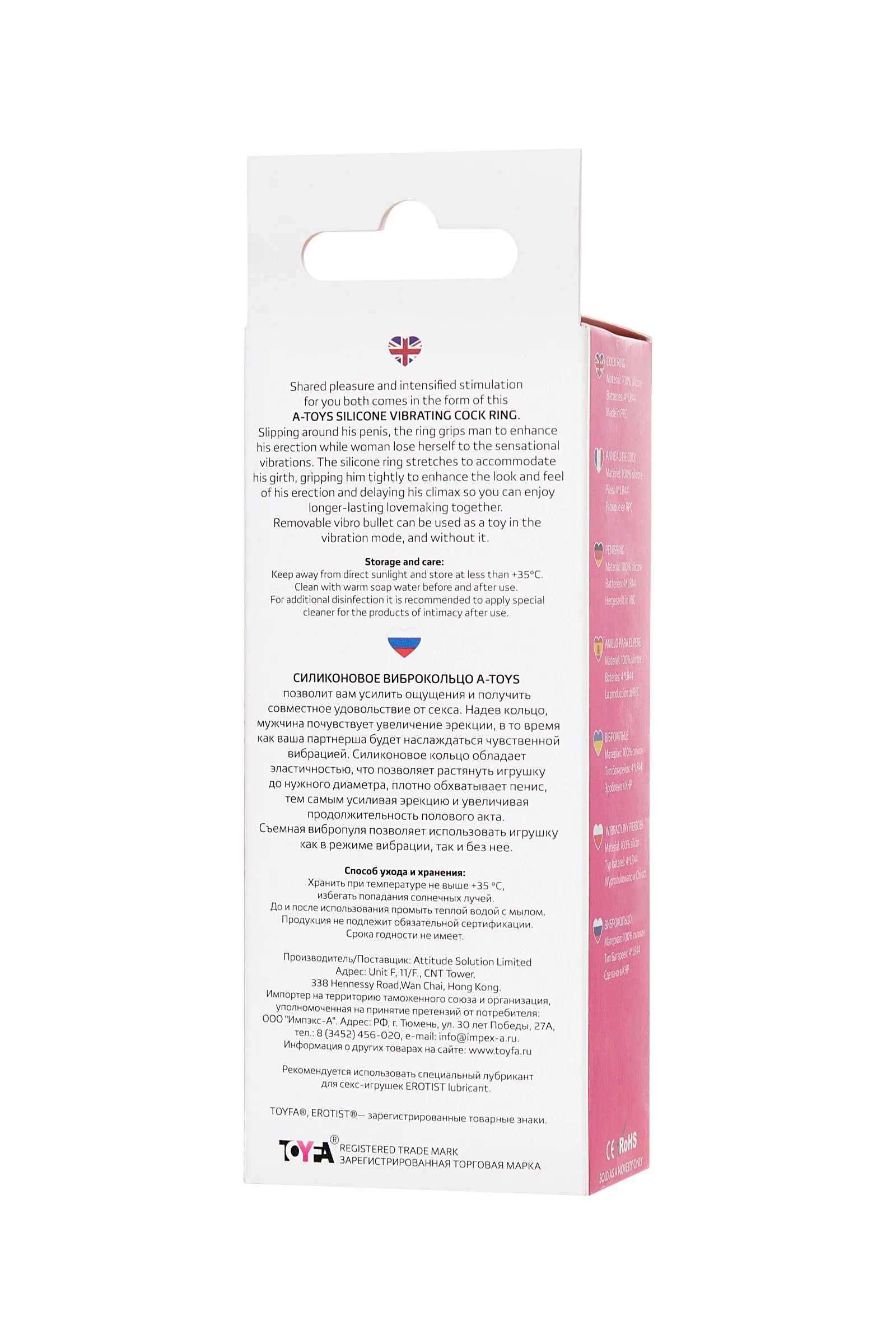 Силиконовое виброкольцо А-Toys Cion позволит вам усилить ощущения и получить совместное удовольствие от секса. Надев кольцо, мужчина почувствует увеличение эрекции, в то время как ваша партнерша будет наслаждаться чувственной вибрацией. Силиконовое кольцо обладает эластичностью, что позволяет растянуть игрушку до нужного диаметра, плотно обхватывает пенис, тем самым усиливая эрекцию и увеличивая продолжительность полового акта. Виброкольцо A-Toys имеет клиторальный стимулятор в виде мягких шипов и ушек для стимуляции партнерши. Съемная вибропуля позволяет использовать игрушку как в режиме вибрации, так и без нее.