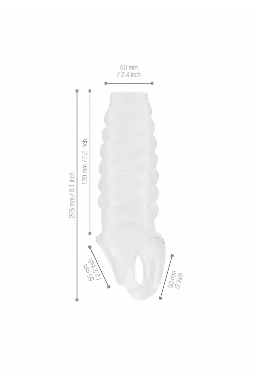 No. 21 Dong Extension – насадка открытого типа для увеличения длины и обхвата полового члена с кольцом для фиксации на мошонке. Она имеет спиралевидную форму для более оптимальной стимуляции. Насадка произведена из высококачественного мягкого материала.