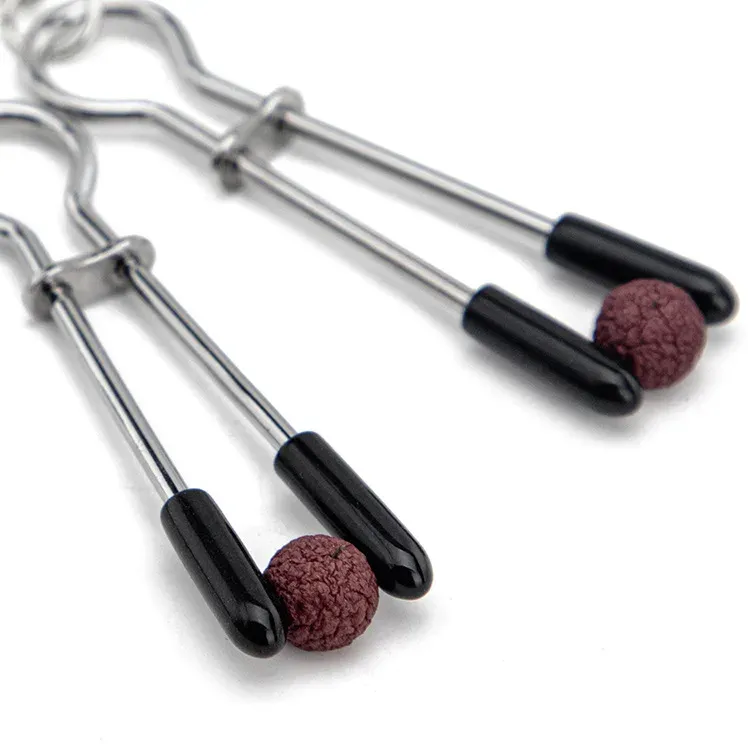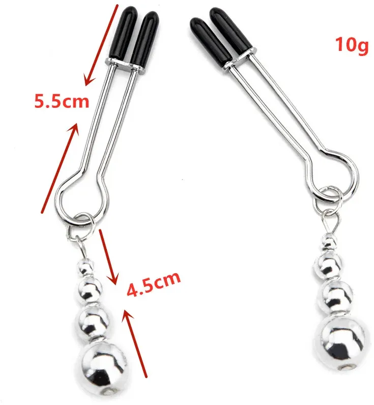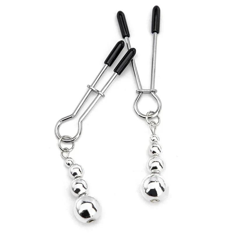 Зажимы на соски с подвеской из бусин и страз служат дополнительным стимулятором одной из самых чувствительных зон. Включают в себя 2 полностью регулируемых многофункциональных зажима. Имеют мягкие наконечники и подвески из бусин и страз, которые одновременно служат украшением и своебразным утяжелителем для дополнительных ощущений.