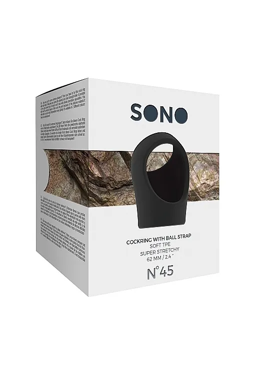 No45 - Cockring with Ball Strap – простое и элегантное эрекционное кольцо для пениса и мошонки, изготовленное из эластичного, легко принимающего температуру тела материала.