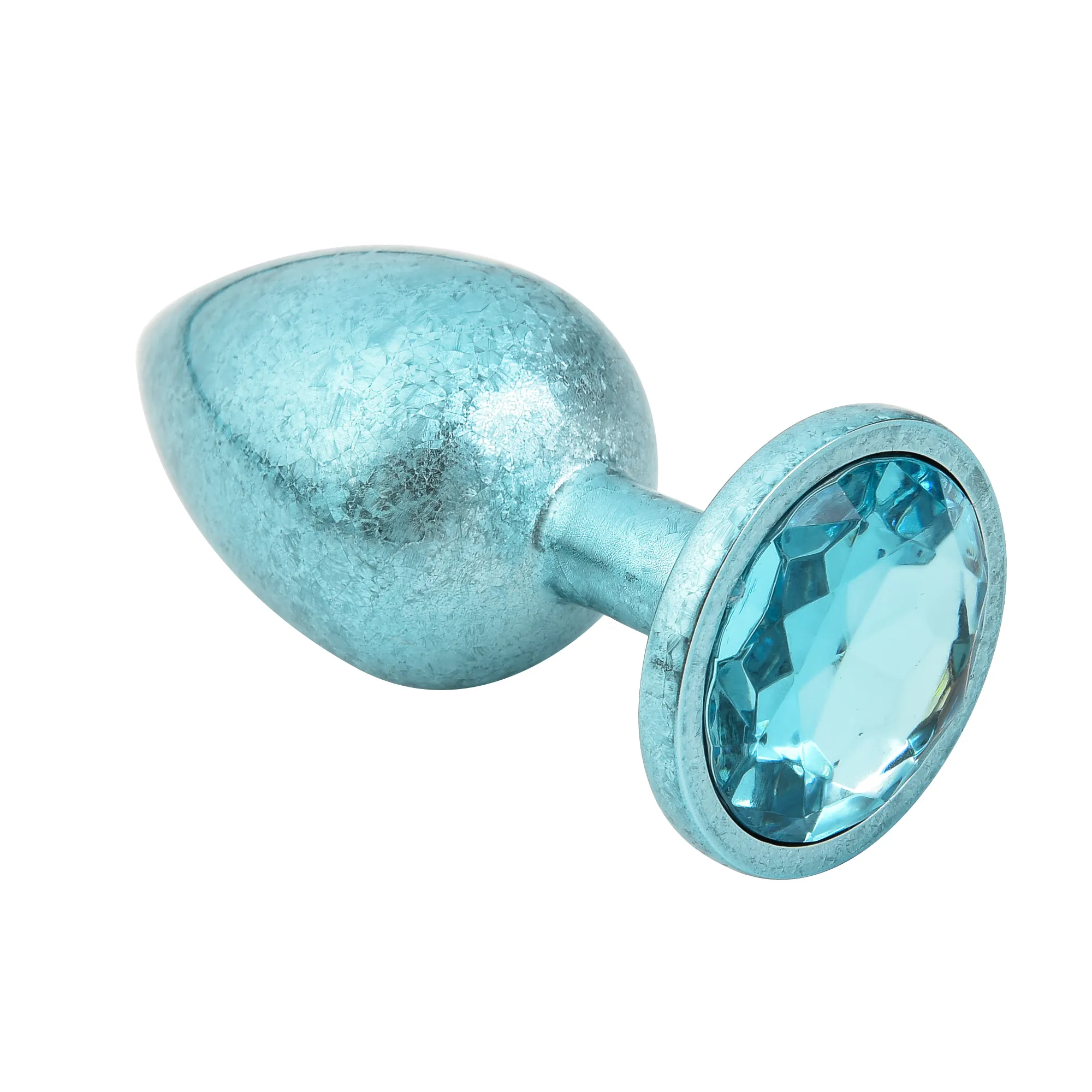 Литая анальная пробка имеет конусообразную форму и гладкую фактуру шлифованного металла. Легкий и прочный алюминиевый сплав гарантирует долговечность и гигиеничность. Крупный граненый кристалл в основании имеет специальное светоотражающее покрытие дна для усиления блеска и более яркого и красочного вида.