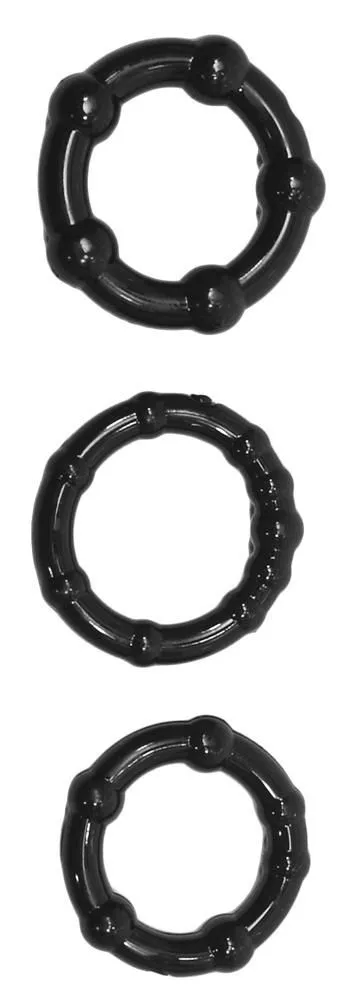 Эрекционные кольца из набора от бренда Juicy Toyz препятствуют оттоку крови, что приводит к усилению эрекции. Кольца сделаны из мягкого и эластичного материала, так что при их ношении Вы не будете испытывать никаких неудобств. Помимо своей основной функции, эти кольца могут привнести в интимную близость пикантность и остроту, усилят ощущения мужчины. Просто наденьте любое кольцо из набора на Ваш выбор и поразите свою избранницу продолжительностью и яркостью полового акта!