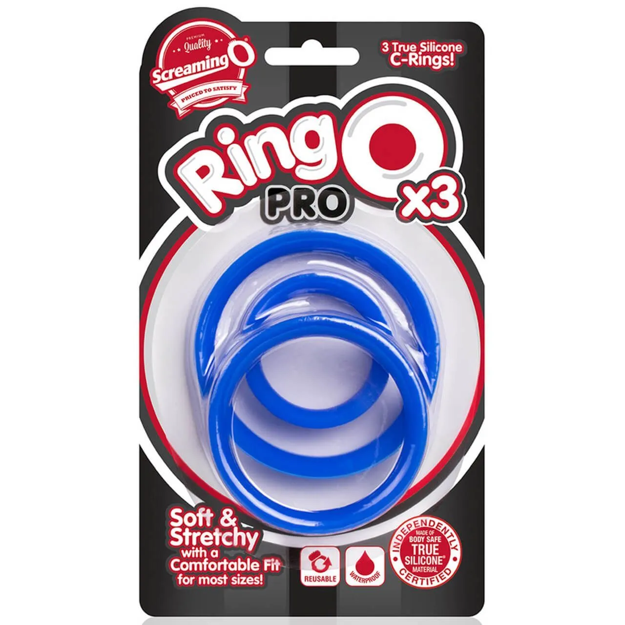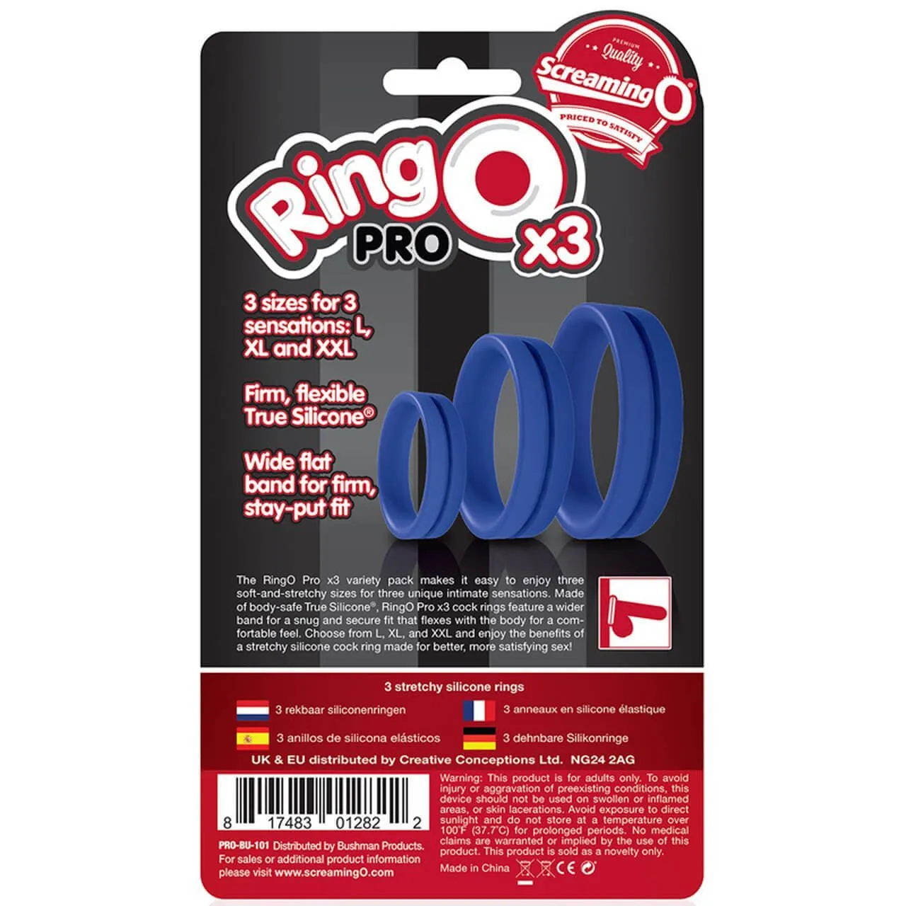 Набор RingO Pro x3 от бренда ScreamingO состоит из трех колец разных размеров: L, XL, и XXL. Каждое из них сможет подарить мужчине новые ощущения, укрепить эрекцию и продлить время интимной близости. Принцип их работы заключается в том, что они пережимают сосуды у основания члена, что приводит к препятствию оттока крова от ствола. Кольца сделаны из гипоаллергенного силикона и хорошо тянутся. Они будут плотно облегать член, но при этом носить их будет комфортно благодаря мягкости материала. Надевать их следует на полуэрегированный член (или яички), со временем он будет становиться более твердым и увеличиваться в размере.