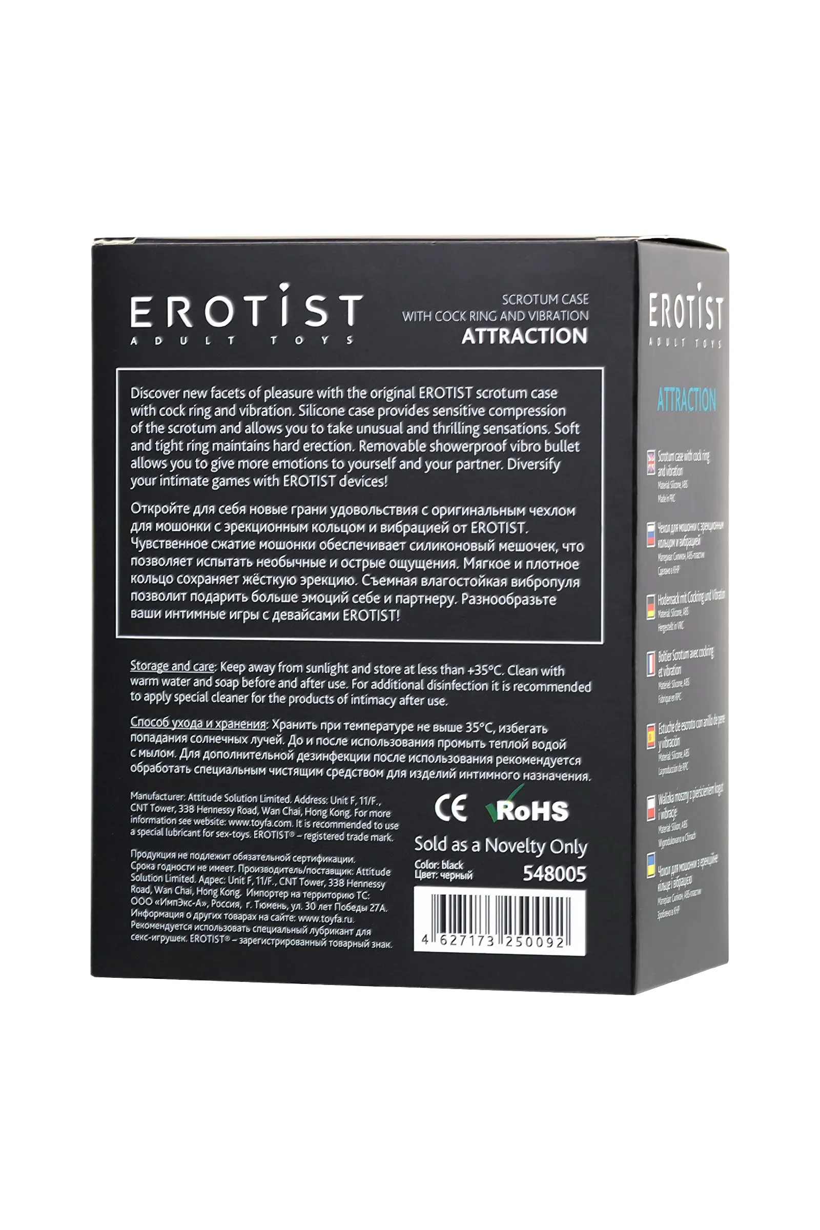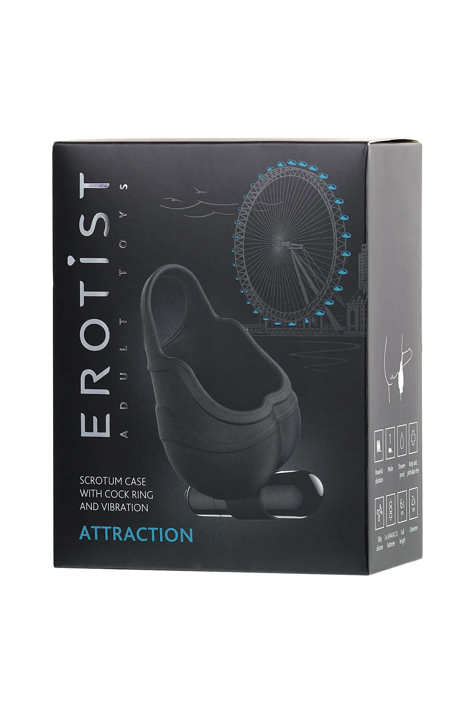 Чехол для мошонки Erotist Attraction с эрекционным кольцом и вибрацией, силикон, черный