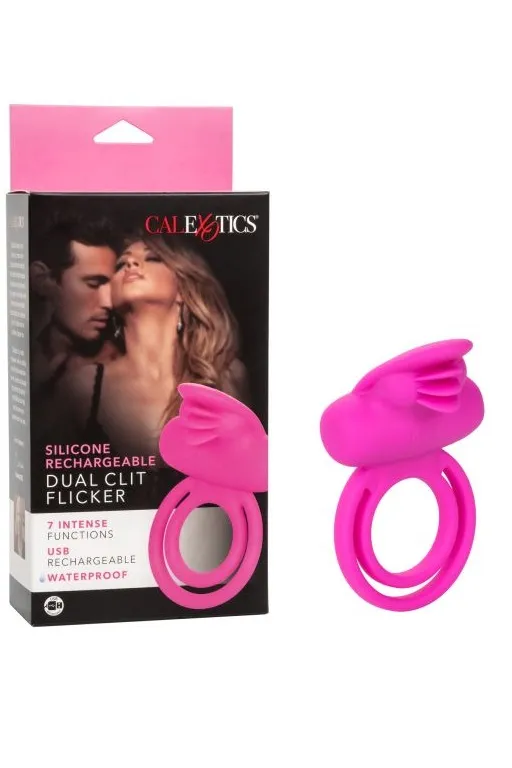 Dual Clit Flicker – перезаряжаемое устройство, предназначенное для поддержания эрекции и стимуляции. Кольцо имеет двойную структуру для фиксации на стволе пениса и дополнительно на мошонку. Встроенная вибропуля обеспечивает 7 функций вибрации, пульсации и эскалации.
