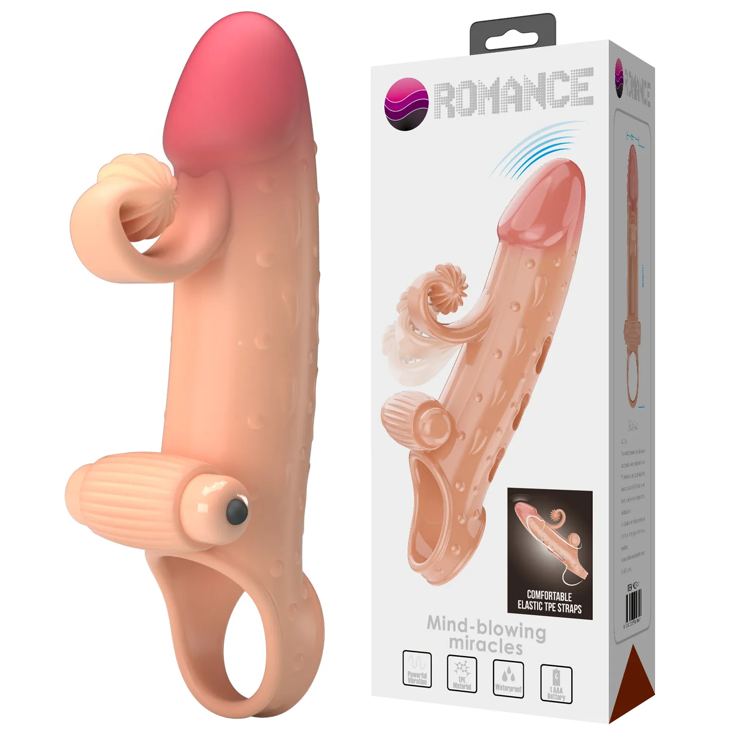 Насадка на пенис с вибрацией из ТПР плотно обхватывает пенис, увеличивая его длину и толщину, обеспечивая более яркие ощущения при проникновении. Вибрация усиливает стимуляцию, а гибкий клиторальный отросток с рельефной текстурой обеспечивает дополнительное удовольствие партнёрше при каждом движении. Вибрация питается от одной батарейки типа AAA (в комплект не входит).
