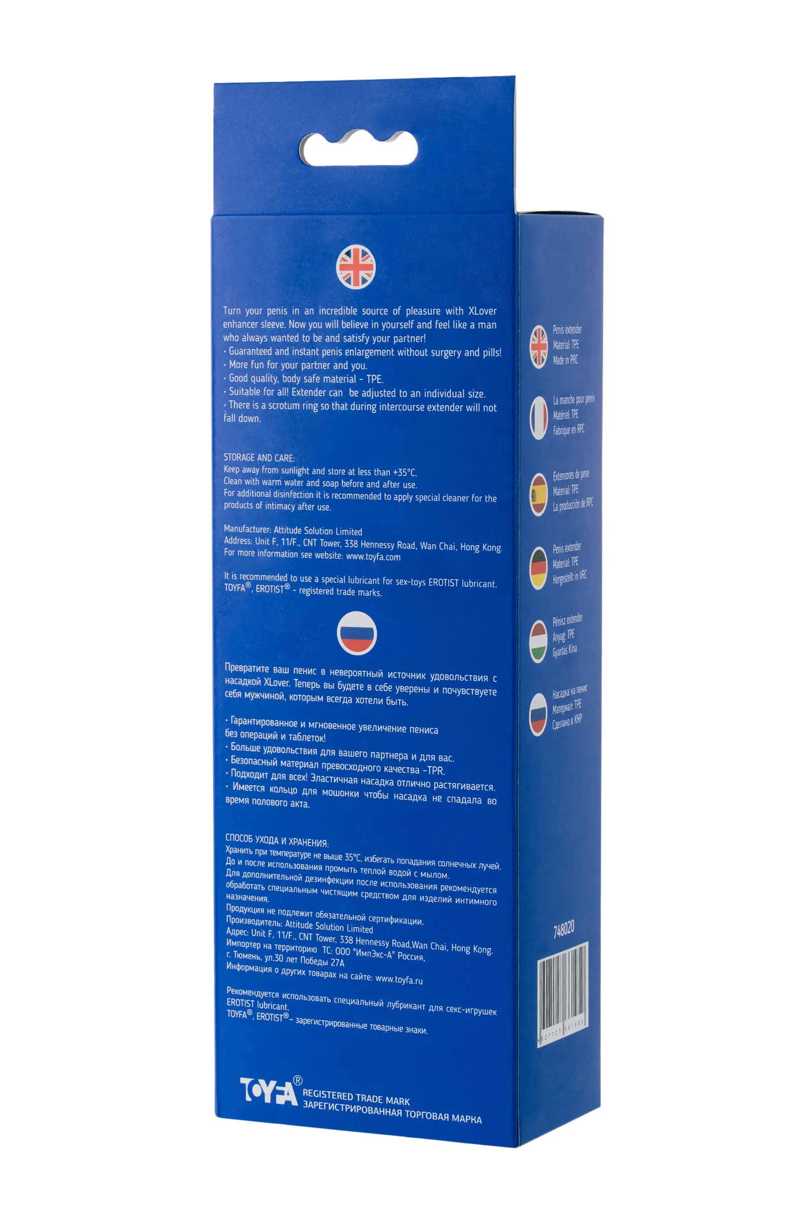 Превратите ваш пенис в невероятный источник удовольствия с насадкой XLover. Теперь вы будете в себе уверены и почувствуете себя мужчиной, которым всегда хотели быть! • Гарантированное и мгновенное увеличение пениса без операций и таблеток на 1 см к длине! • Больше удовольствия для вашего партнера и для вас. • Превосходный, безопасный материал –TPR. •Подходит для всех! Эластичная насадка отлично растягивается. •Имеется кольцо для мошонки.
