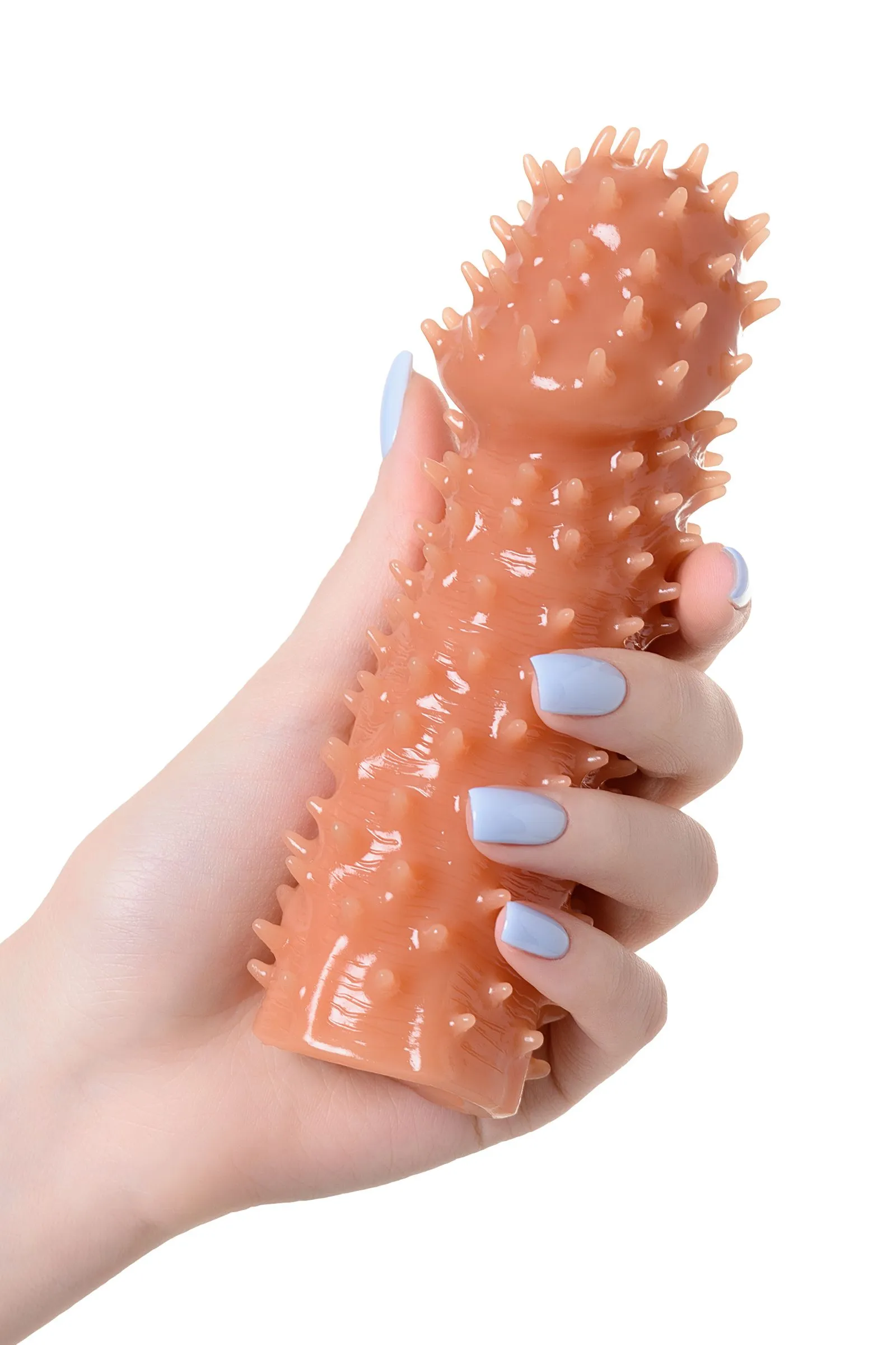 Увеличивающая насадка KOKOS Extreme Sleeve 07 с впечатляющей дополнительной стимуляцией решает сразу 3 задачи: дарит удовольствие обоим партнерам, позволяет экспериментировать с секс-игрушками и выводит интимную жизнь на более высокий уровень. Желанное разнообразие. Насадка придает члену внушительный объем и новую форму, поэтому как нельзя лучше подходит для сценариев «Секс с незнакомцем». При этом выразительный рельеф с мелкими выпуклыми шипами привносит незабываемый эффект новизны в ощущения партнерши. Зашкаливающее удовольствие для двоих. В то время как женщина испытывает потрясающее чувство наполненности и получает интенсивную стимуляцию стенок влагалища, мужчина наслаждается более продолжительным половым актом и возбуждающими оргазмами партнерши. Яркие эксперименты. Киберкожа прекрасно передает всю мощность вибраций, поэтому насадку можно использовать не только с партнером, но и с любимым вибратором. Вы также оцените: как KOKOS Extreme Sleeve 07 превосходно тянется и легко надевается на член, обеспечивая при этом плотное и комфортное прилегание как KOKOS Extreme Sleeve 07 быстро принимает температуру тела и насколько он приятен на ощупь как KOKOS Extreme Sleeve 07 долго сохраняет первоначальный вид при соблюдении простых правил — использование лубрикантов на водной основе и хранение в индивидуальной упаковке в прохладном темном месте Увеличивающая насадка KOKOS Extreme Sleeve 07 подарит ощущения, которых у вас еще не было.