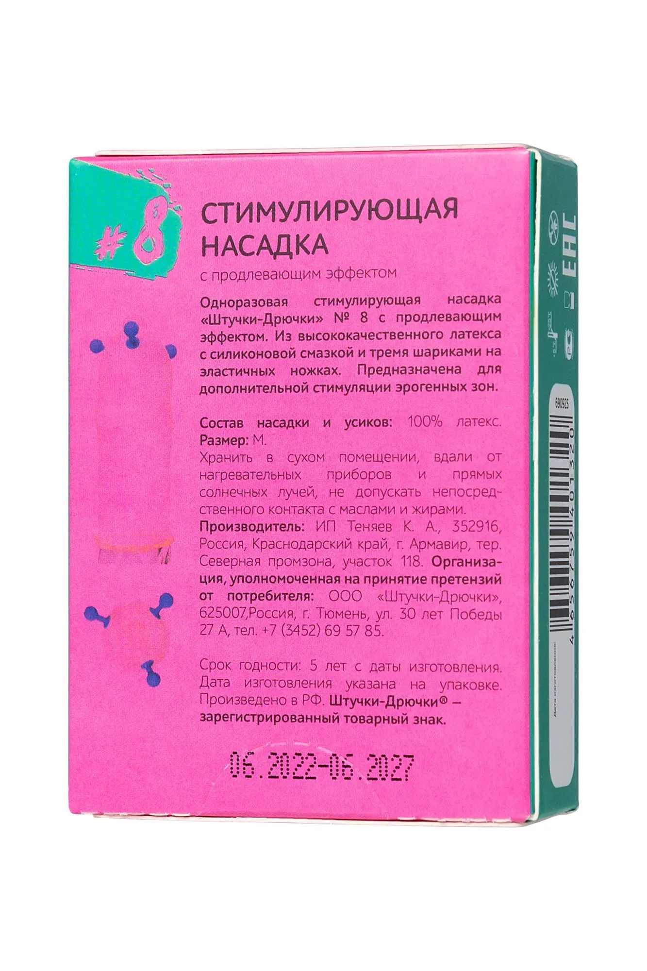 —Насадка стимулирующая Штучки-Дрючки № 8 с продлевающим эффектом