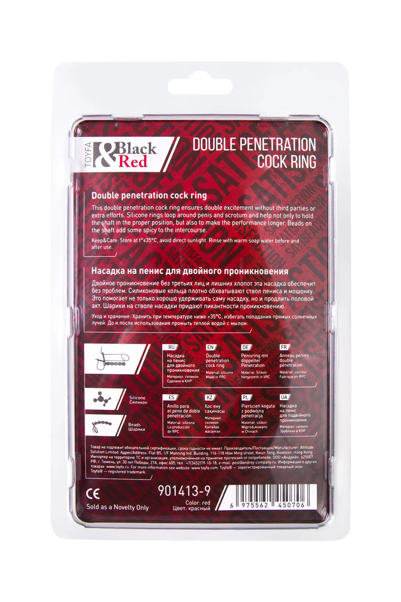 —Насадка на пенис для двойного проникновения Black&Red by TOYFA, силикон, красная, 19,5 см