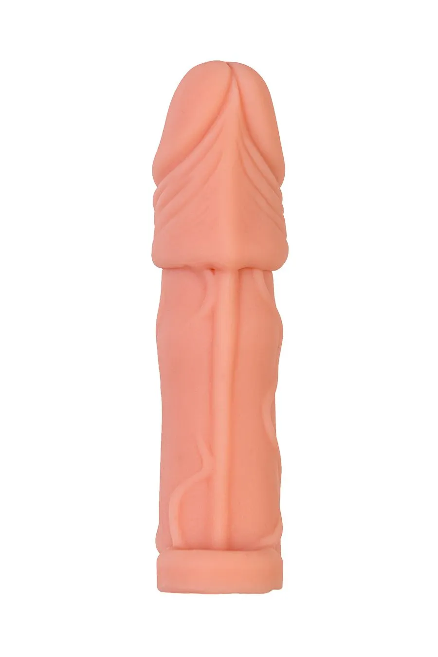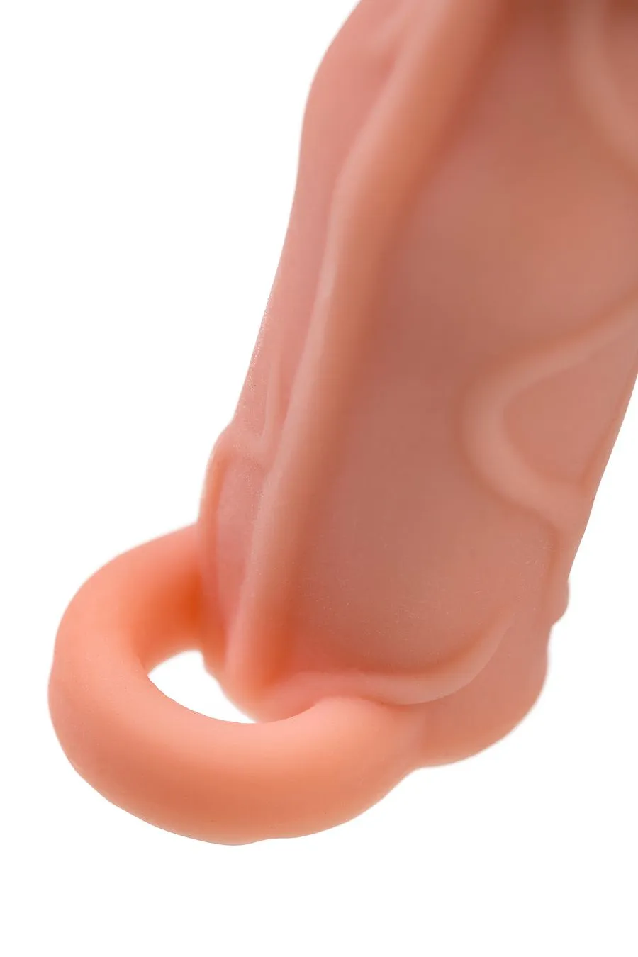 Насадка из супермягкого реалистичного материала легко растягивается и надевается на член, чтобы сделать его более впечатляющим. Она не только гарантирует мгновенное увеличение пениса, но и позволяет продлить половой акт, делая мужской орган менее чувствительным. Материал Softskin имитирует настоящую кожу и быстро становится теплым и «живым». Кольцо на мошонку отлично удерживает насадку, и вы можете наслаждаться друг другом, не заботясь о ее фиксации.