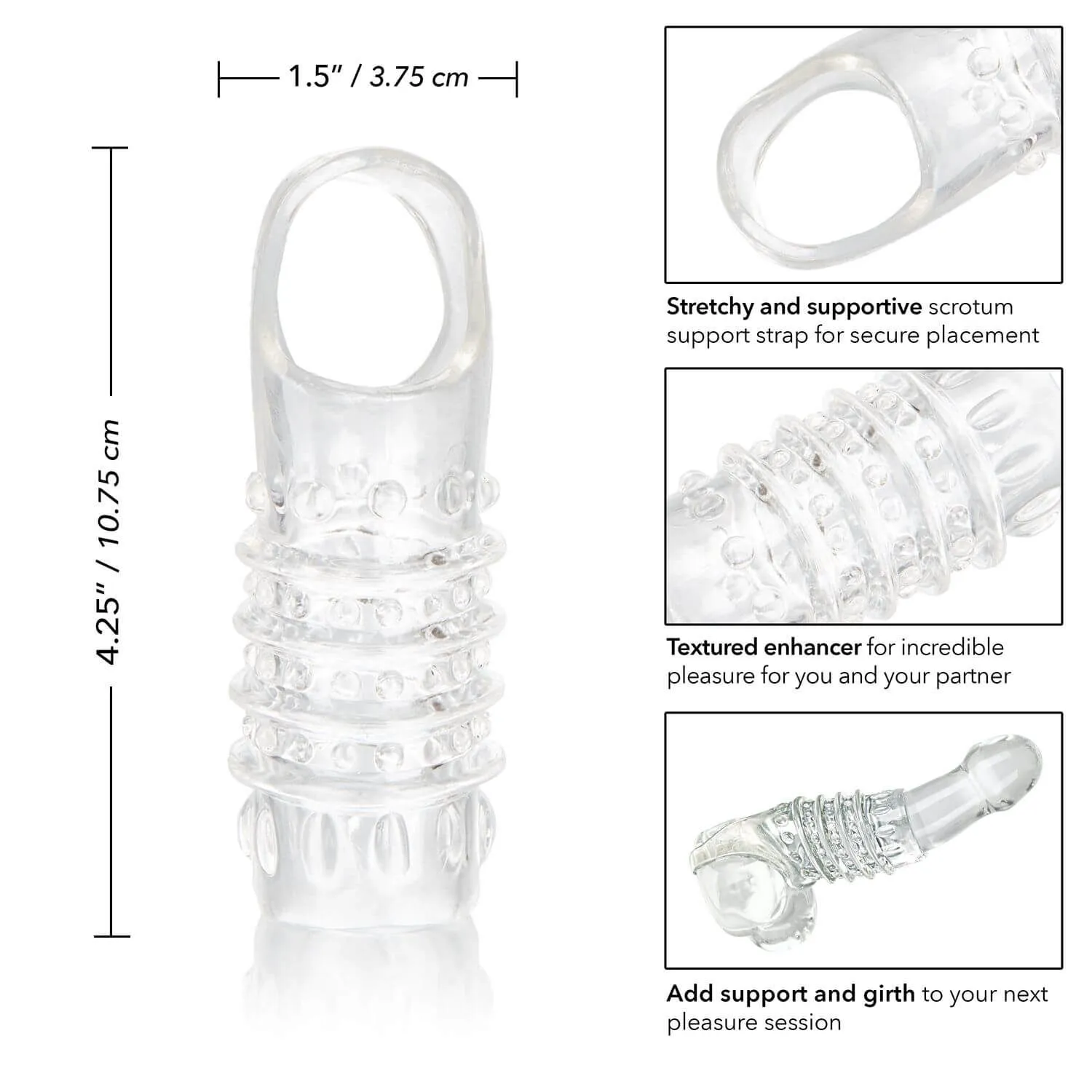 Хорошо тянущаяся и невероятно мягкая на ощупь насадка Stimulation Enhancer от бренда California Exotic Novelties идеально подойдет для мужчин, желающих продлить время интимной близости и подарить своей партнерше новые ощущения. Насадка увеличит толщину пениса, а ребристый рельеф и пупырышки на ее поверхности обеспечат дополнительную стимуляцию интимных зон. На ее конце есть специальное колечко, надеваемое на мошонку. Оно не только будет удерживать насадку на месте, но и позволит избежать преждевременной эякуляции.