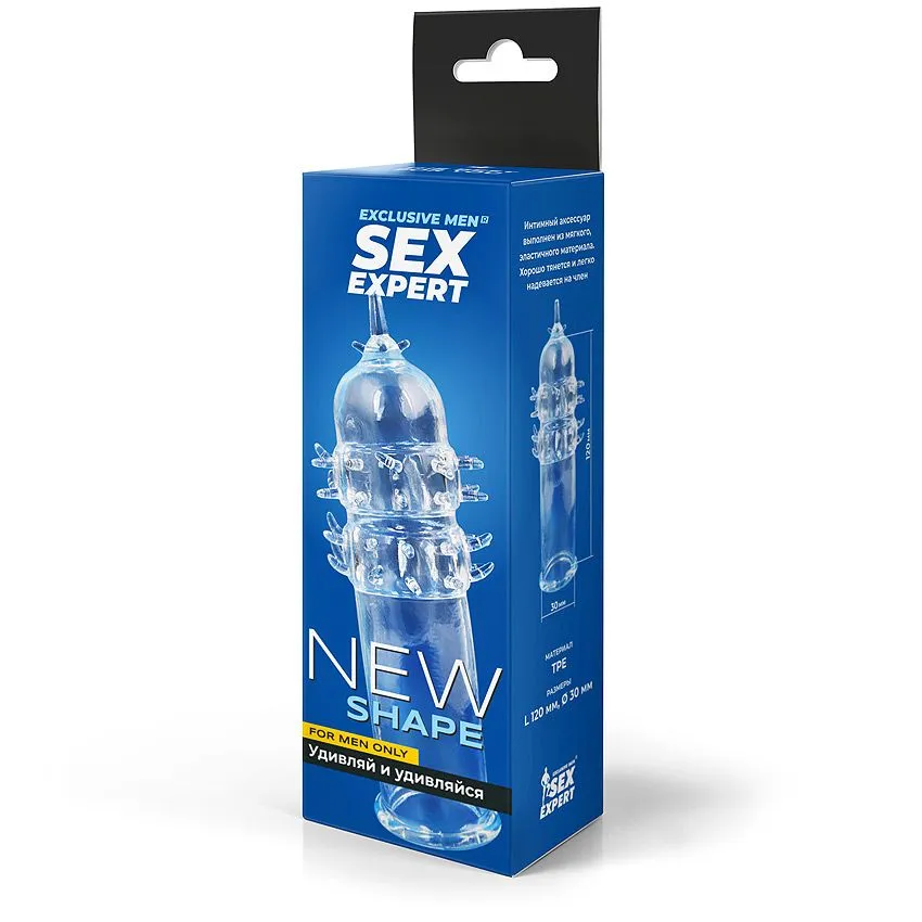 Закрытая насадка на пенис для увеличения размеров мужского полового органа. На поверхности изделия имеются небольшие шипики и рёбрышки для дополнительной стимуляции партнёрши.