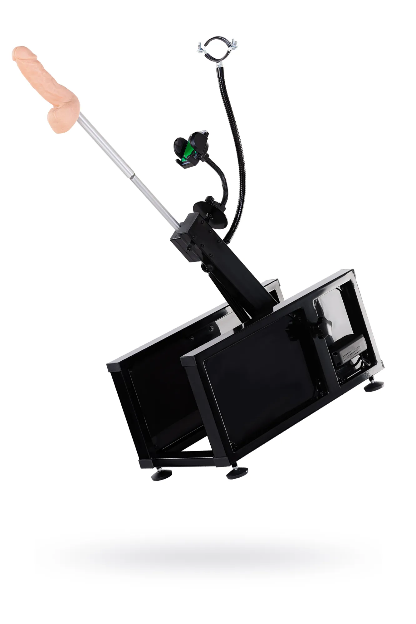 Секс-машина Motion доставит вам неземное удовольствие под любым углом, ведь она может то, что ни одна другая машина в мире! Ей доступны 14 угловых положений, это более чем на 180 градусов, также она порадует Вас самым глубоким проникновением, длина фрикций достигает почти 18 см! Секс-машина Motion поставляется в собранном виде. Вам лишь нужно установить нужную насадку - реалистичный фаллоимитатор или анальный стимулятор ёлочка, а благодаря специальному переходнику, объединив обе насадки, Вы сможете получать удовольствие от двойной стимуляции. Скорость секс-машины удобно регулируется от 0 до 220 фрикций в минуту. Управление производится с помощью выносного пульта с длинным шнуром. В комплекте с машиной входит Hands free адаптер "Третья рука", которая позволяет использовать вместе с машиной вибромассажер Hitachi Magic Wand. А с помощью специального держателя для смартфона Вы сможете снять свое домашнее видео и поделиться им со своим партнером по электронной почте.
