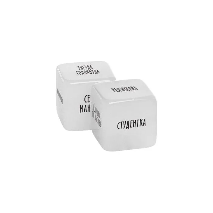 Хотите воплотить в жизнь самые смелые эротические фантазии? Тогда просто бросьте кубики! Они позволят поэкспериментировать с ролевыми играми. Один из кубиков определит роль для неё, а другой — для него. Бросайте кубики, перевоплощайтесь и наслаждайтесь друг другом!