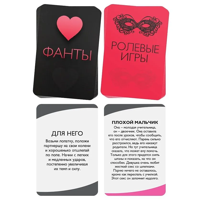 Этот набор позволит вам разнообразить сексуальную жизнь и добавить в неё немного перчинки. Вас ждут 20 карт из серии «Во власти страсти», которые включают в себя фанты для него и для неё, а также горячие ролевые игры. Выбирайте любую колоду, вытягивайте карточки и выполняйте задания. Кубик из комплекта поможет выбрать позы для секса, а лопатка добавить нотку азарта в игру.