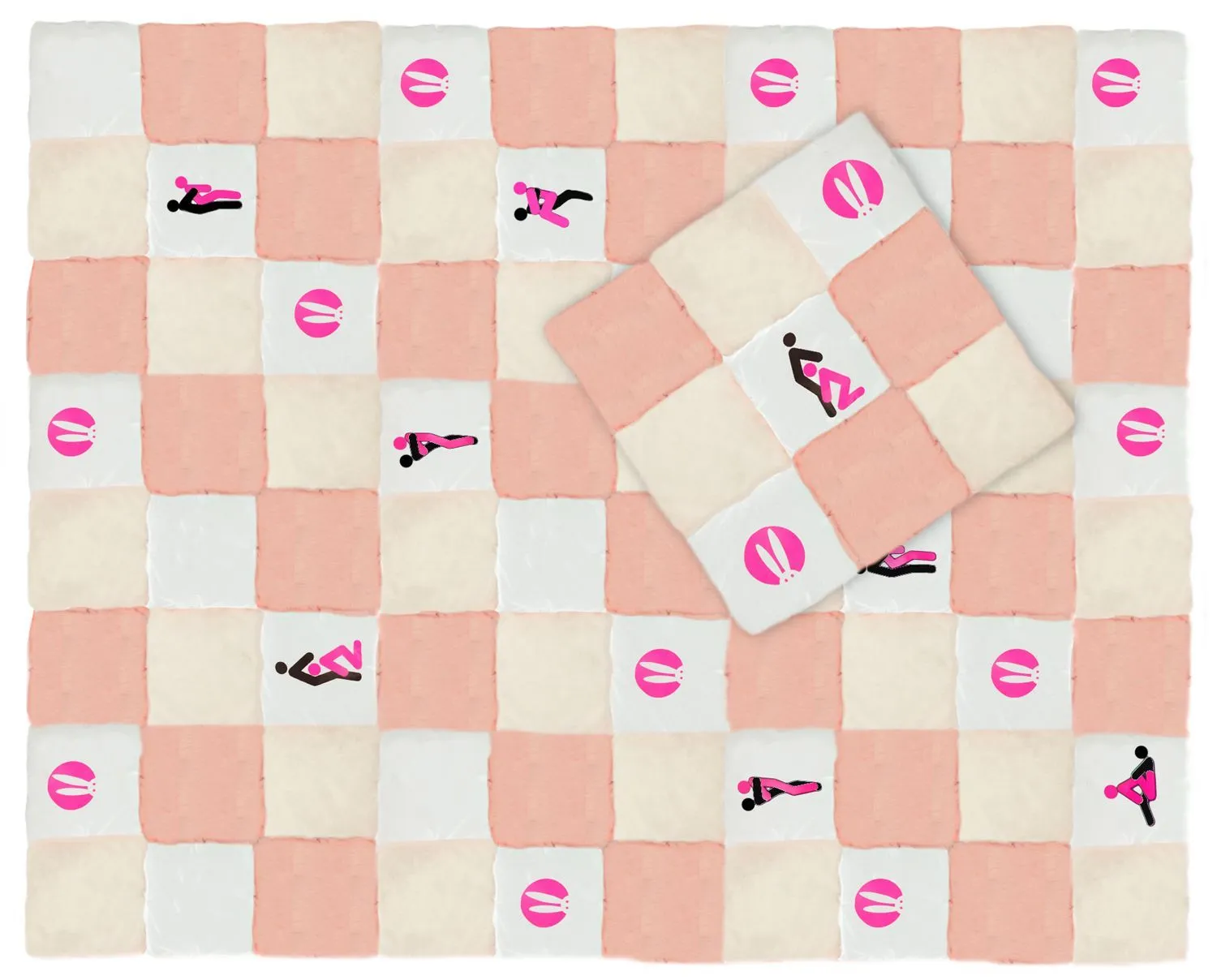 Белый комплект состоит из 3 подушек: одна 1,3 х 1,6 метра, две по 0,45 х 0,45 метров.