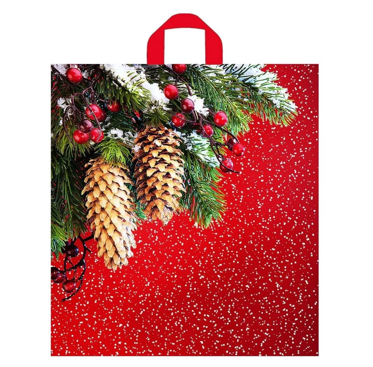 Пакет "Шишки на красном" с петлевой ручкой — отличное решение для оформления подарка своим друзьям или членам семьи.