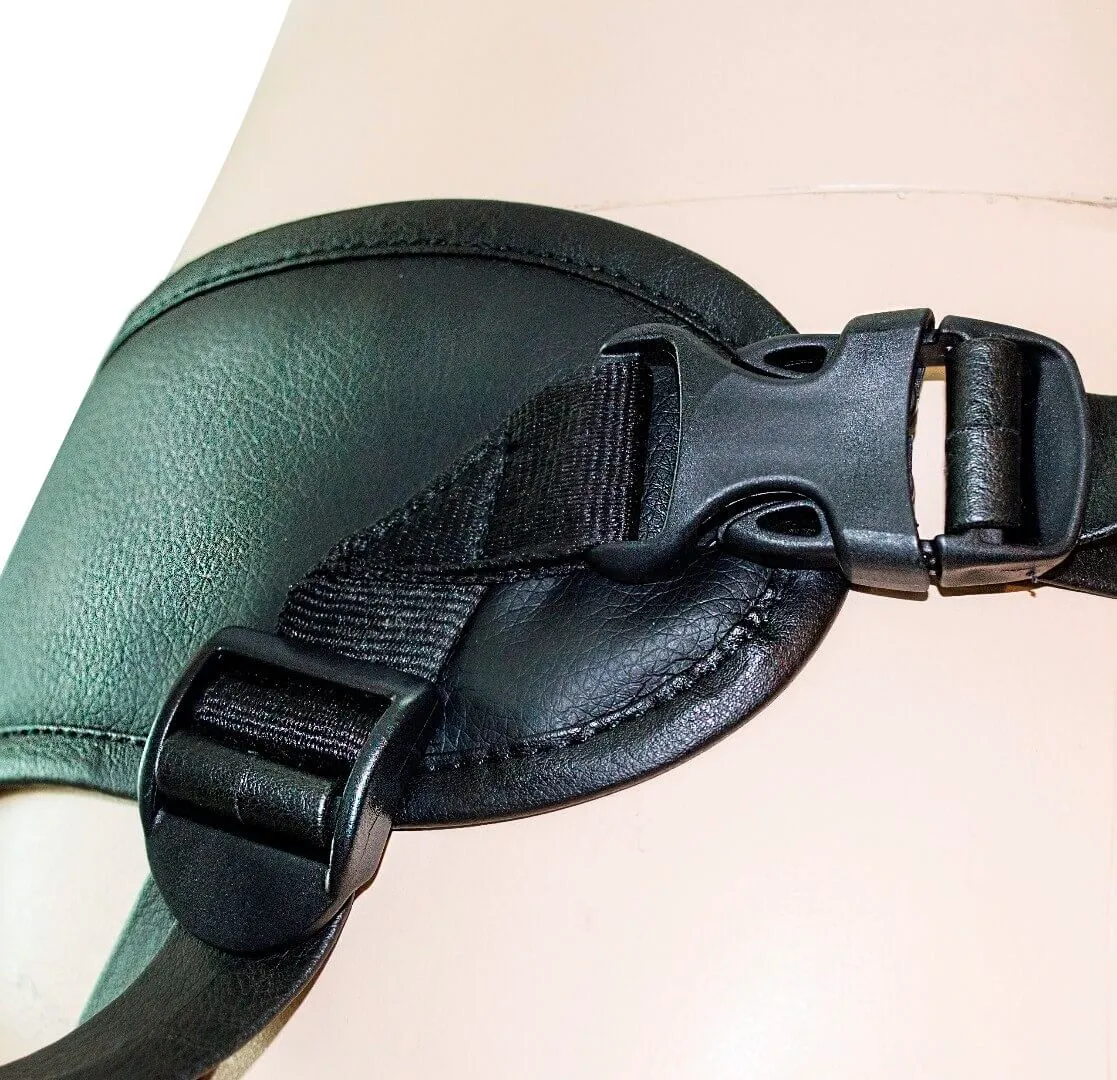 Пояс сделан из искусственной кожи и мягкого вспененного материала, который не будет травмировать кожу. Благодаря удобным боковым креплениям его можно подогнать по своей фигуре, а затем снимать и надевать без дополнительной регулировки. Широкий бандаж на пояснице удержит трусики на месте и обеспечит их плотное прилегание к телу. Насадки фиксируются на поясе коннекторами стандартных форм и размеров.