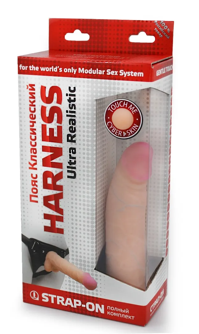 Насадка для страпона Harness,в комплект входят трусики. Ствол фаллоимитатора приятный и мягкий на ощупь,не имеет запах.  Насадка выполнена из материала «Киберкожа» и  подойдет к любой системе Harness Длина насадки – 18см, максимальный диаметр – 4 см. Имеет подарочную упаковку.