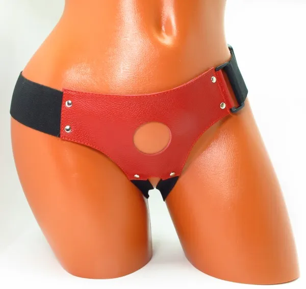 Трусики для страпона, изготовлены из кожи. Крепятся при помощи широких эластичных ( 5 см) лент. Размер легко меняется при помощи застежки. Диаметр отверстия для страпона - 4 см