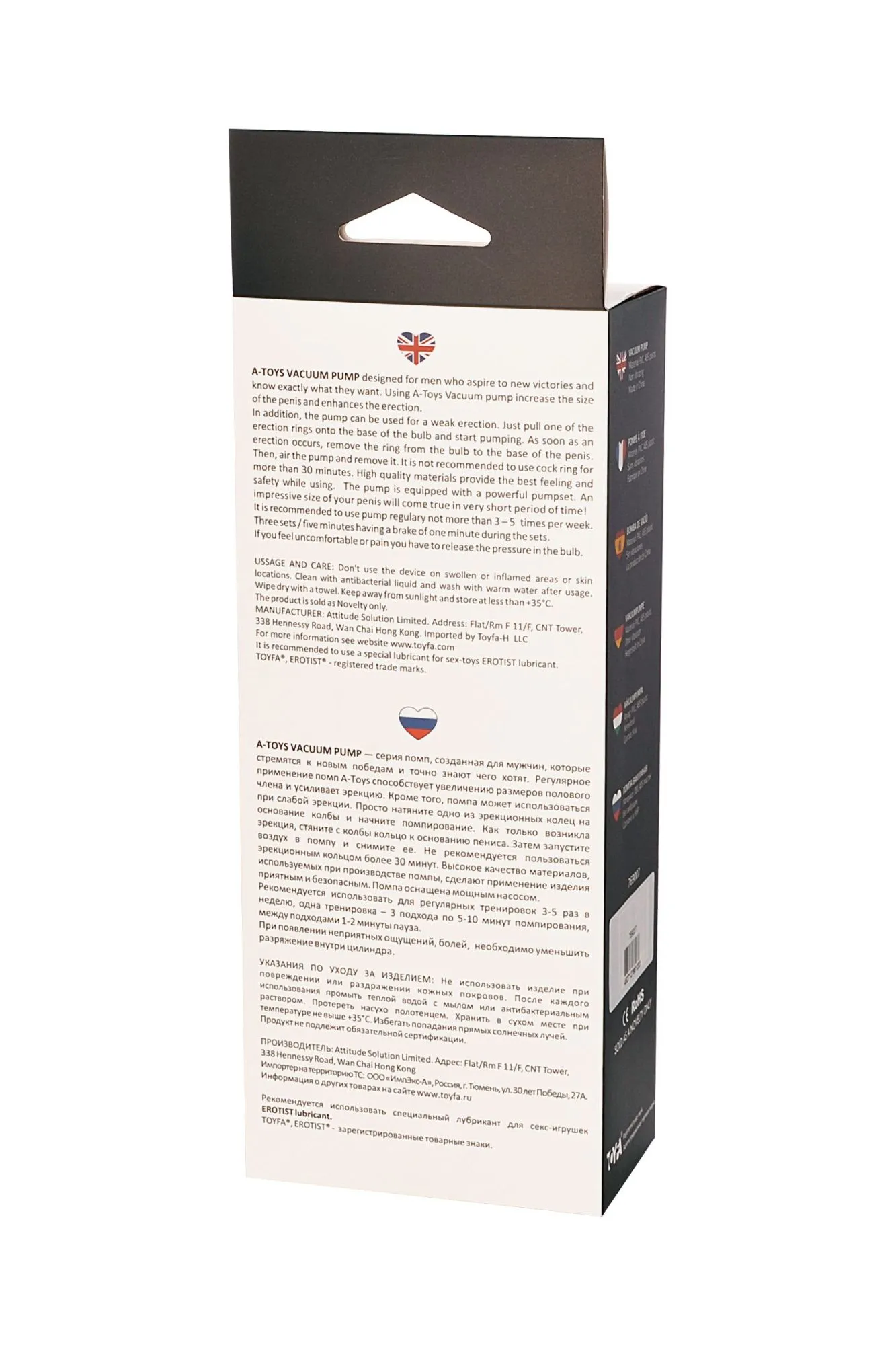 A-Toys Vacuum pump — серия помп, созданная для мужчин, которые стремятся к новым победам и точно знают чего хотя. Регулярное применение помп Atoys способствует увеличению размеров полового члена и усиливает эрекцию. Высокое качество материалов, используемых при производстве помпы, сделают применение изделия приятным и безопасным. Помпа оснащена мощным насосом, а также механизмом вибрации, которое крепится к помпе с помощью эластичного материала с кармашком для виброяичка и управляется выносным пультом.
