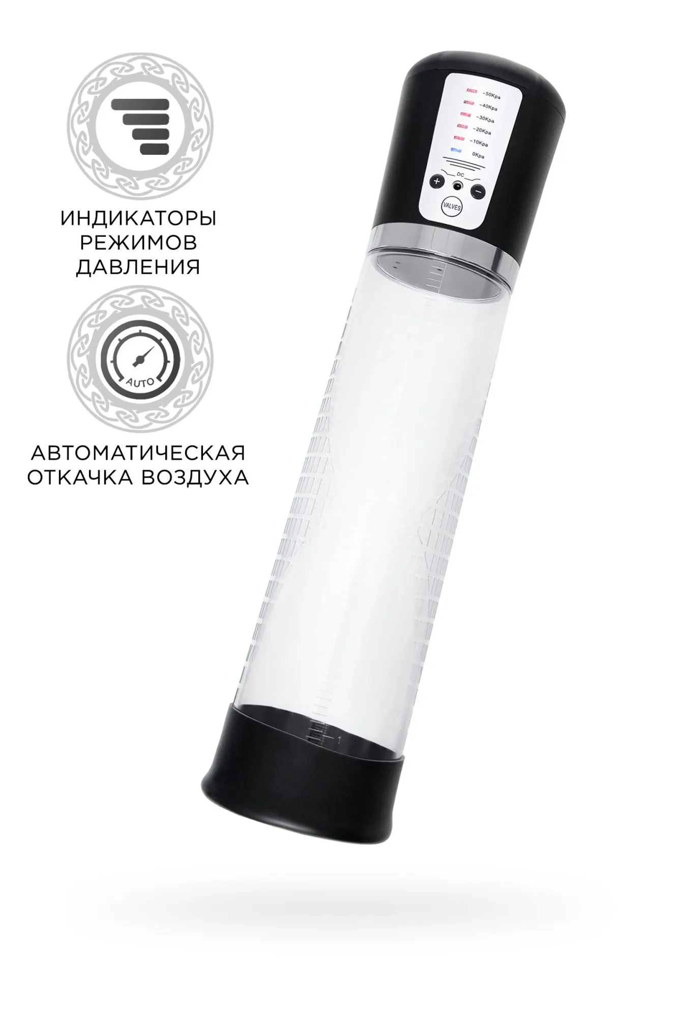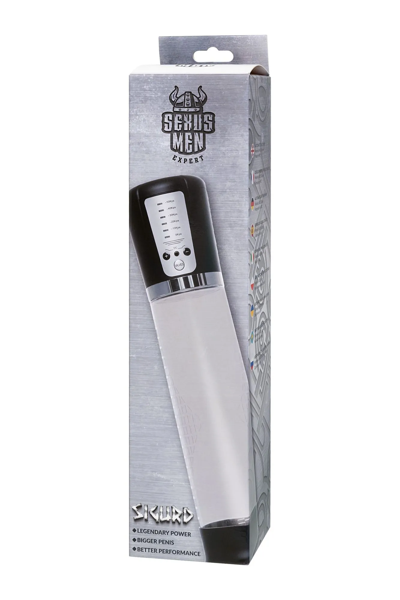 Автоматическая помпа на аккумуляторе Sigurd от Sexus® Men – для самых требовательных мужчин, которые стремятся к легендарной мужской силе. Сексуальное могущество для мужчины – не только крепкая и надежная эрекция, но и внушительный размер орудия. С автоматической помпой Sigurd серии Sexus® Men Expert возможно достичь впечатляющих результатов в области увеличения размеров пениса, занимаясь пенбилдингом по эффективной программе тренировок. Для тренировки, а также чтобы подготовить себя к длительному и яркому сексу, вставьте свой пенис в колбу и откачайте воздух. С помпой Sigurd не нужно прилагать усилий для создания вакуума, она сделает это за вас комфортно и безопасно. Помпа имеет 5 уровней давления, которые регулируются кнопками +/ - на колбе с на LED-индикаторами 10/20/30/40/50 Кпа. После сброса давления кнопкой Valves умное устройство само откачает воздух до заданного режима, остановится, и будет держать заданный уровень. Благодаря отрицательному давлению увеличивается приток крови к половому члену. Прозрачный ABS-пластик позволяет наблюдать как пенис набирает силу и увеличивается в размере. А измерительная шкала помогает отслеживать результаты прямо в процессе. Для достижения ощутимых результатов рекомендуются систематические занятия по программе эффективного тренинга, которая входит в комплект. Регулярное использование вакуумной помпы Sigurd от Sexus® Men позволяет: последовательно увеличить длину и диаметр полового члена, делая его более внушительным и прокаченным сделать эрекцию более стабильной, крепкой и продолжительной повысить сексуальную выносливость и половое влечение поднять уверенность в своих возможностях и совершать новые сексуальные подвиги понизить вероятность образований аномальных фиброзных тканей Помпа Sigurd комплектуется программой тренировок и USB-проводом для зарядки. Порядок работы помпы: Включение: коротким нажатием на кнопку «+» помпа включается на нулевом уровне, загорается синий индикатор 0 Kpa Повышение уровней: коротким нажатием на кнопку «+» последовательно повышайте уровни откачки воздуха. Шаг – 10 Kpa, красные индикаторы загораются рядом с отметками давления в помпе. Помпа останавливается на заданном уровне и поддерживает указанный индикатором уровень давления. Если вы сбросите давление кнопкой «VALVES», помпа автоматически откачает воздух до заданного уровня. Понижение уровней: сбросьте давление кнопкой «VALVES», а затем коротким нажатием на кнопку «-» последовательно понижайте уровни давления в помпе. Шаг – 10 Kpa, красные индикаторы загораются рядом с отметками давления в помпе. Помпа останавливается на заданном уровне и поддерживает указанный индикатором уровень давления. Сброс давления: кнопкой «VALVES» помпа сбрасывает давление в колбе. Если вы не понизили уровень, то помпа автоматически восстановит его до указанного красным индикатором. Выключение: последовательно понижайте уровни кнопкой «-» до 0 Kpa, отмеченного синим индикатором. Через 5 секунд помпа отключится сама. Перед тем, как извлечь член из помпы, сбросьте давление кнопкой «VALVES».