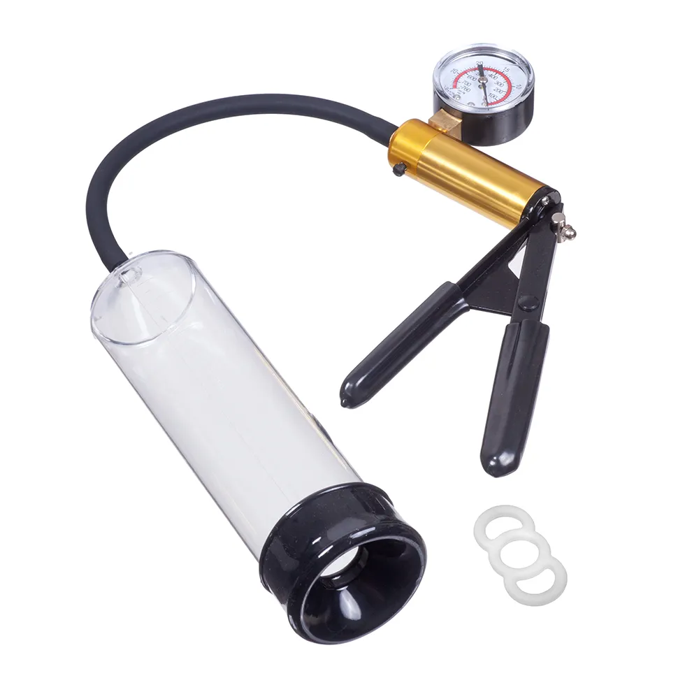 С вакуумной помпой с монометром Astronaut от Lola Games эрекция будет тверже и продолжительнее. Прочная колба изготовлена из прозрачного пластика и снабжена линейкой, чтобы оценивать результат. Инновационный шланг из медицинского силикона не пережимается и отлично пропускает воздух. Помпа имеет удобную систему всасывания воздуха - механизм с монометром, который отличается высоким качеством и точностью измерения уровня разряжения воздуха в колбе. Удобный механизм позволит достичь нужного давления. Воздух сбрасывается при помощи поворота и открытия ручки клапана сброса воздуха, расположенного под прибором. Благодаря насадке из мягкого материала ТПЕ, помпа плотно прилегает к телу. В комплекте эрекционное кольцо, форма которого разработана специально для использования с помпой, и помогает поддерживать состояние эрекции. Характеристики: общая длина колбы - 24,5 см., рабочая длина- 21.5 см, внутренний диаметр -5,6 см., Диаметр отверстия в насадке-2,5 , длина шланга - 26 см. Упаковка: картонная коробка с принтом.