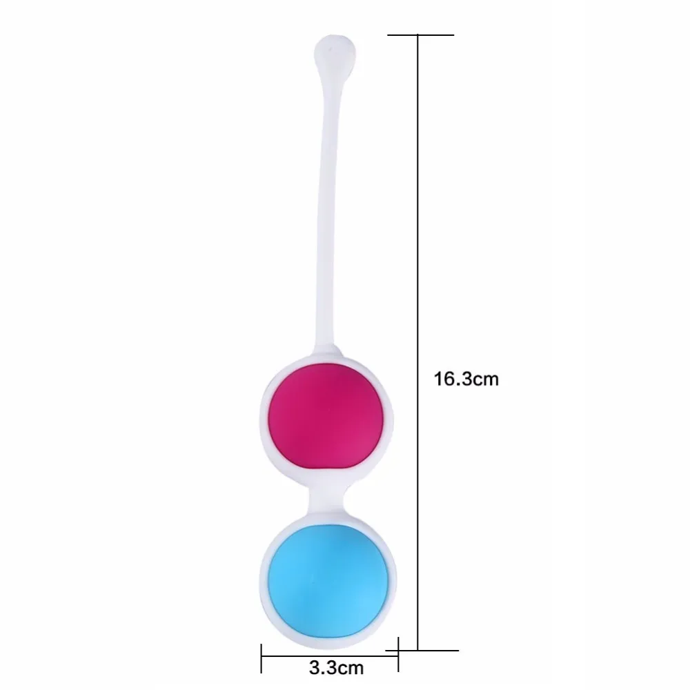 Вагинальные шарики, розового и синего цвета, из силикона. Шарики имеют удобную петельку для извлечения из тела. Длина тренажера 7 см (без петельки), длина петельки- 9 см. Диаметр каждого шарика 2,7 см. Вес шариков- 16 и 36 гр. Упаковка- картонная коробка.