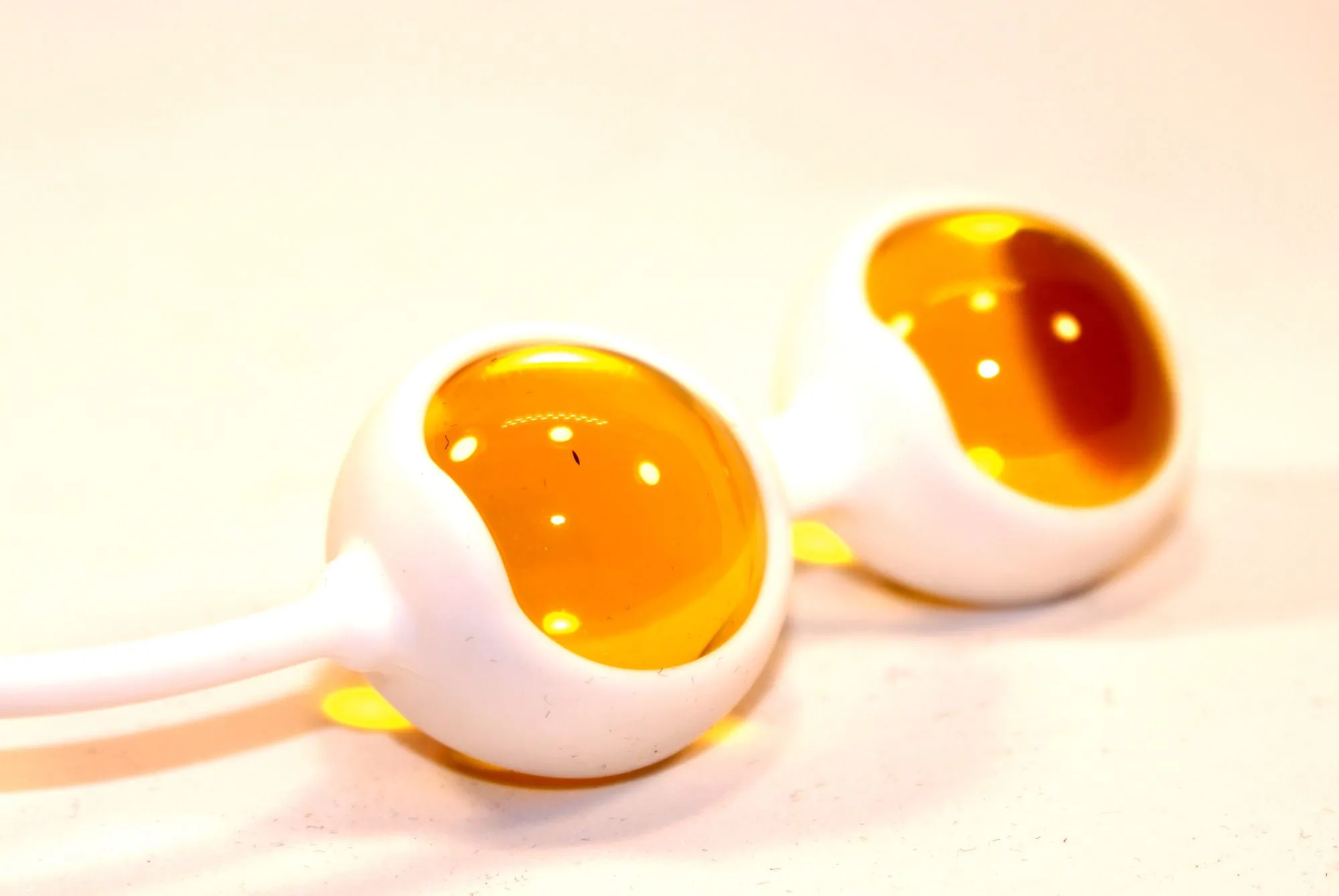 Янтарные вагинальные шарики со смещенным центром тяжести для тренировки интимных мышц. Вагинальные шарики используют для сексуального удовольствия. Петля позволяет легко извлекать шарики. Характеристики: цвет – белый/янтарный, материал – силикон, длина – 16 см, диаметр – 3,3 см, производитель – Китай.