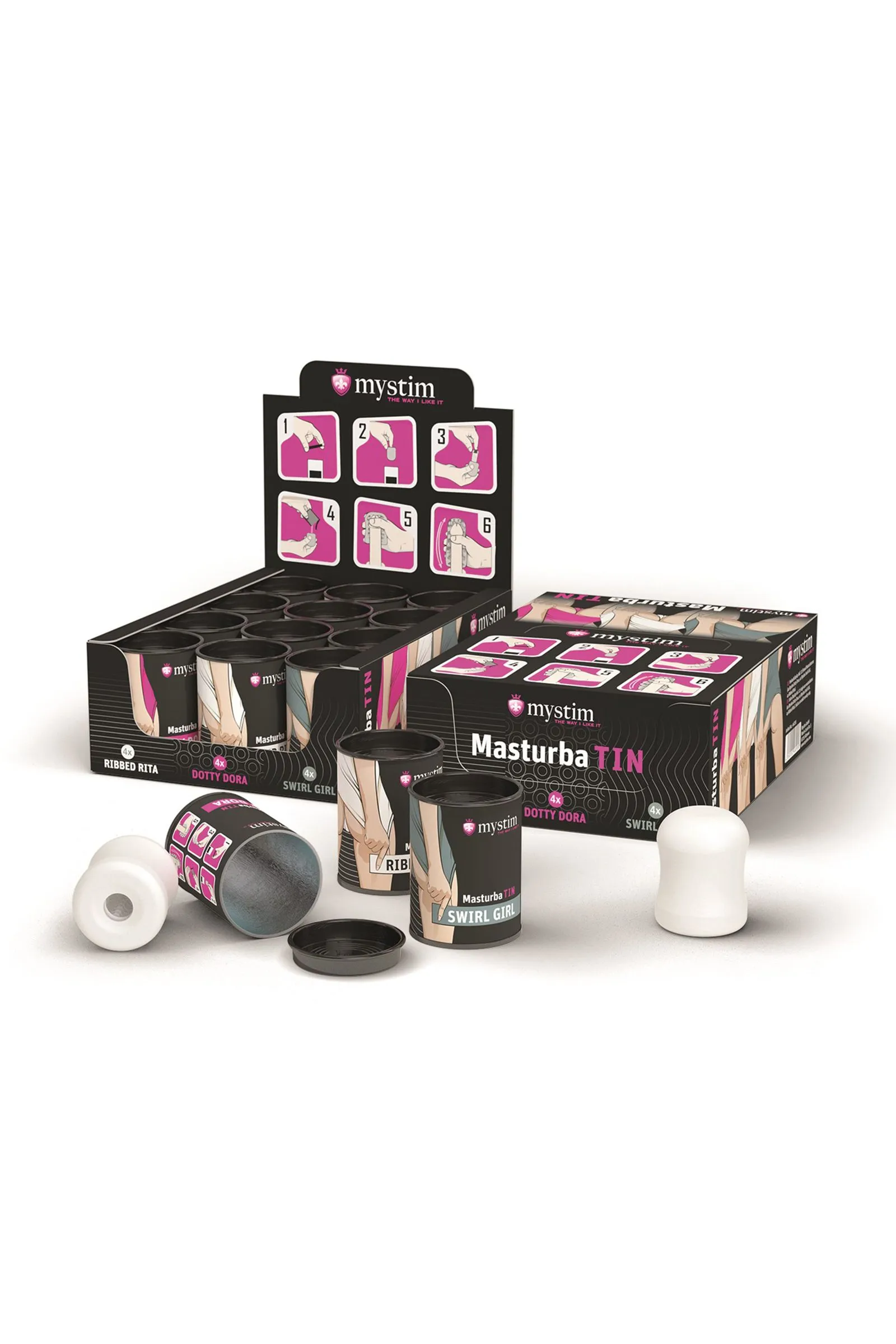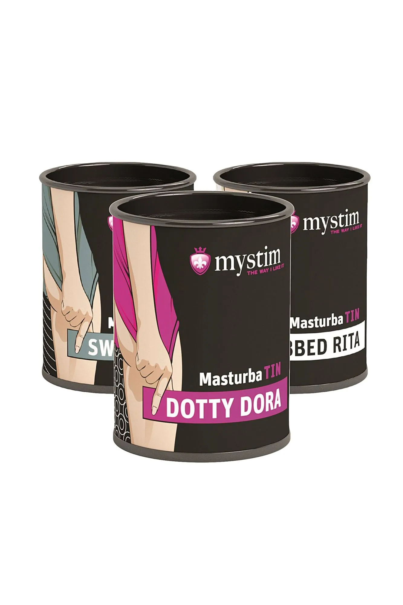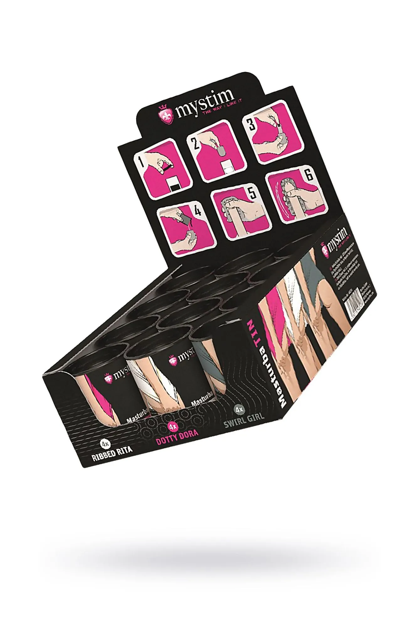 Mystim Masturba Tin — горячий набор для разнокалиберного удовольствия. В него входят 3 вида мастурбаторов — 4 Swirl Girl, 4 Dotty Dora, 4 Ribbed Rita. Swirl Girl Мастурбатор, специализирующийся на качественном эротическом массаже. Его выпуклый рельеф активно стимулирует член так, будто это делает опытная массажистка. Dotty Dora, Мастурбатор для громкой сексуальной разрядки. Его преимущество — рельеф в форме точек. Именно они искусно массируют член, задействуя каждый участок и доводя до мощнейшей кульминации. Ribbed Rita Мастурбатор для воплощения эротических фантазий в реальность. Его ребристая поверхность с первых же секунд распаляет желание, мобилизует все эрогенные точки и в итоге дарит сногсшибательный оргазм. Набор мастурбаторов Mystim Masturba Tin-BroOnTheGo Set открывает простор для сексуальных экспериментов.