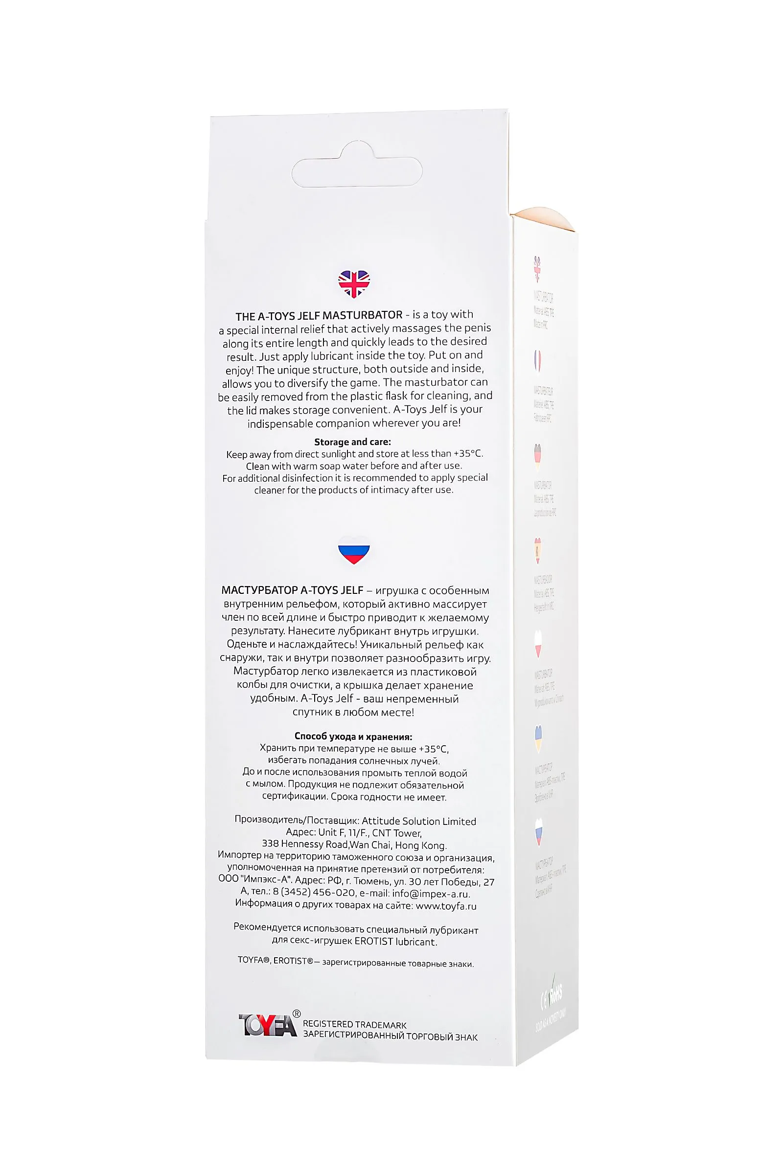 Мастурбатор A-Toys Jelf – игрушка с особенным внутренним рельефом, который активно массирует член по всей длине и быстро приводит к желаемому результату. Нанесите лубрикант внутрь игрушки. Оденьте и наслаждайтесь! Уникальный рельеф как снаружи, так и внутри позволяет разнообразить игру. Мастурбатор легко извлекается из пластиковой колбы для очистки, а крышка делает хранение удобным. A-Toys Jelf - ваш непременный спутник в любом месте! Общий размер:18,5 см Рабочий размер: 15 см