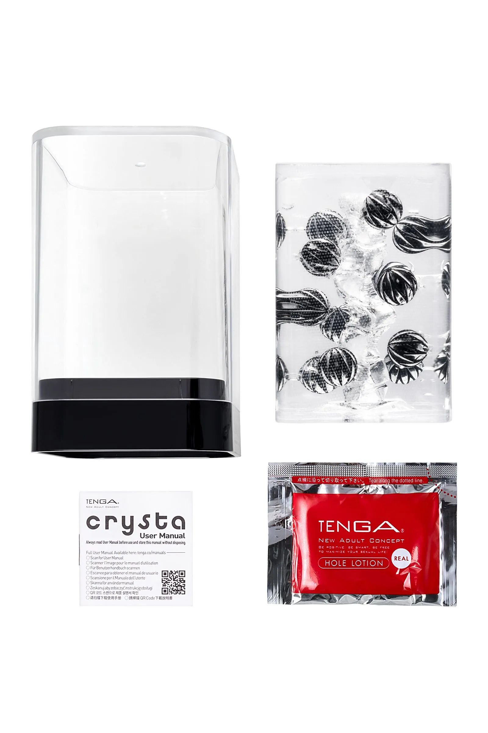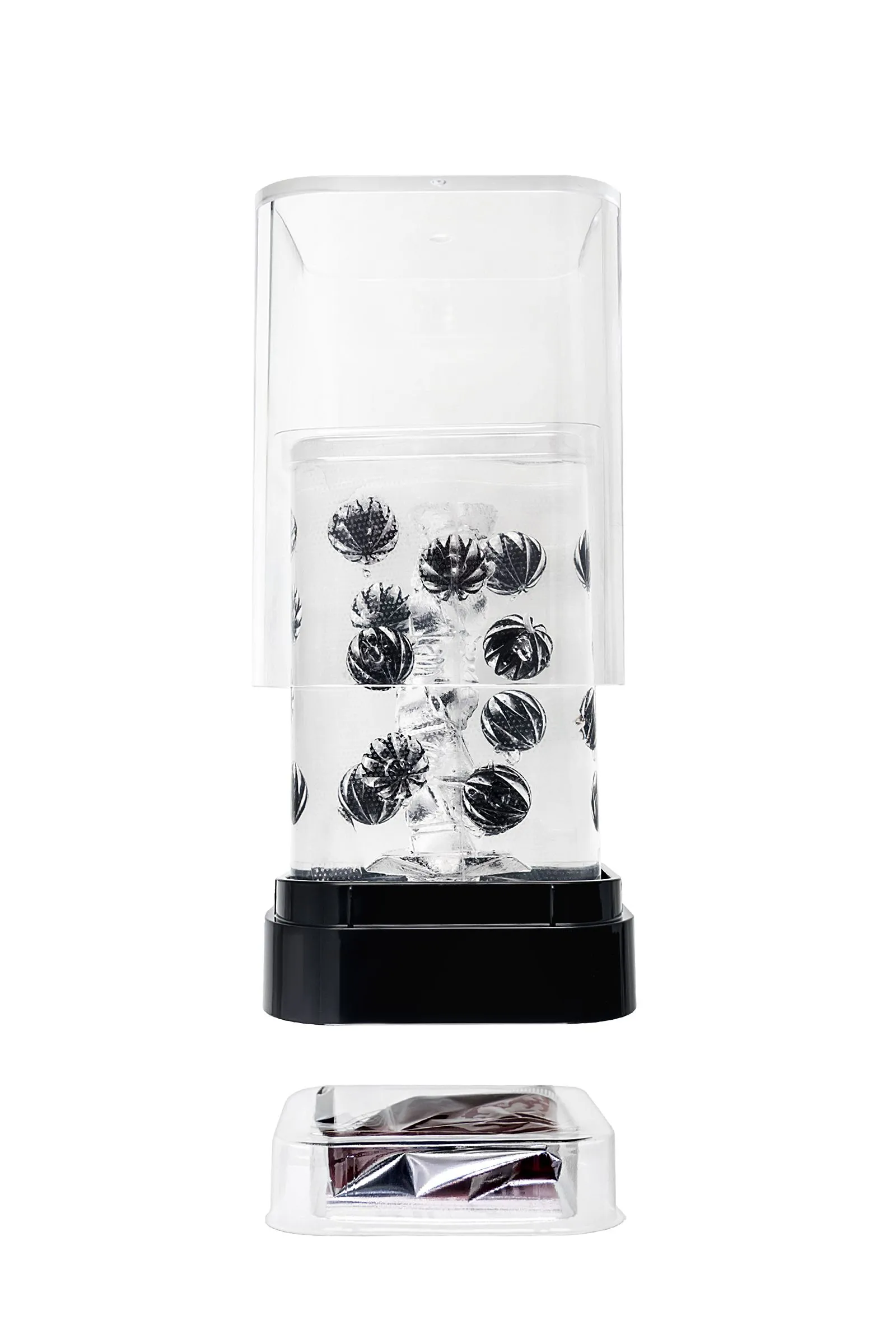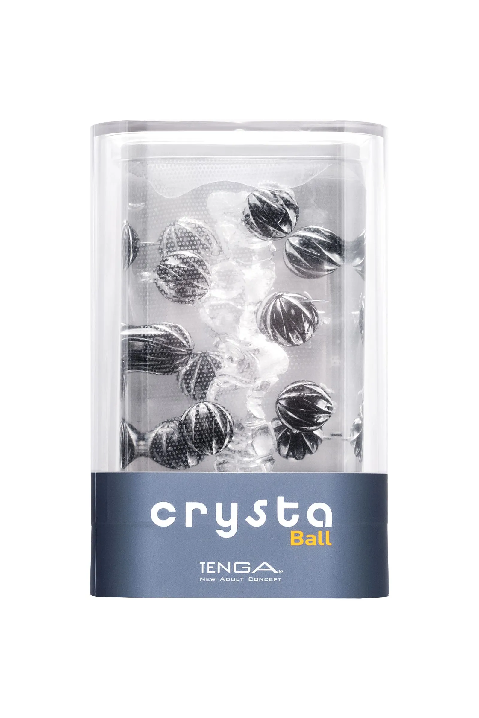Функциональная форма и футуристичный дизайн делают коллекцию Tenga Crysta настоящим произведением искусства среди мужчских мастурбаторов. В динейке представлены три мастурбатора с различными рельефами. Текастура Ball состоит из множества сфер разного диаметра, расположенных вдоль узкого пузырчатого канала в хаотичном порядке.