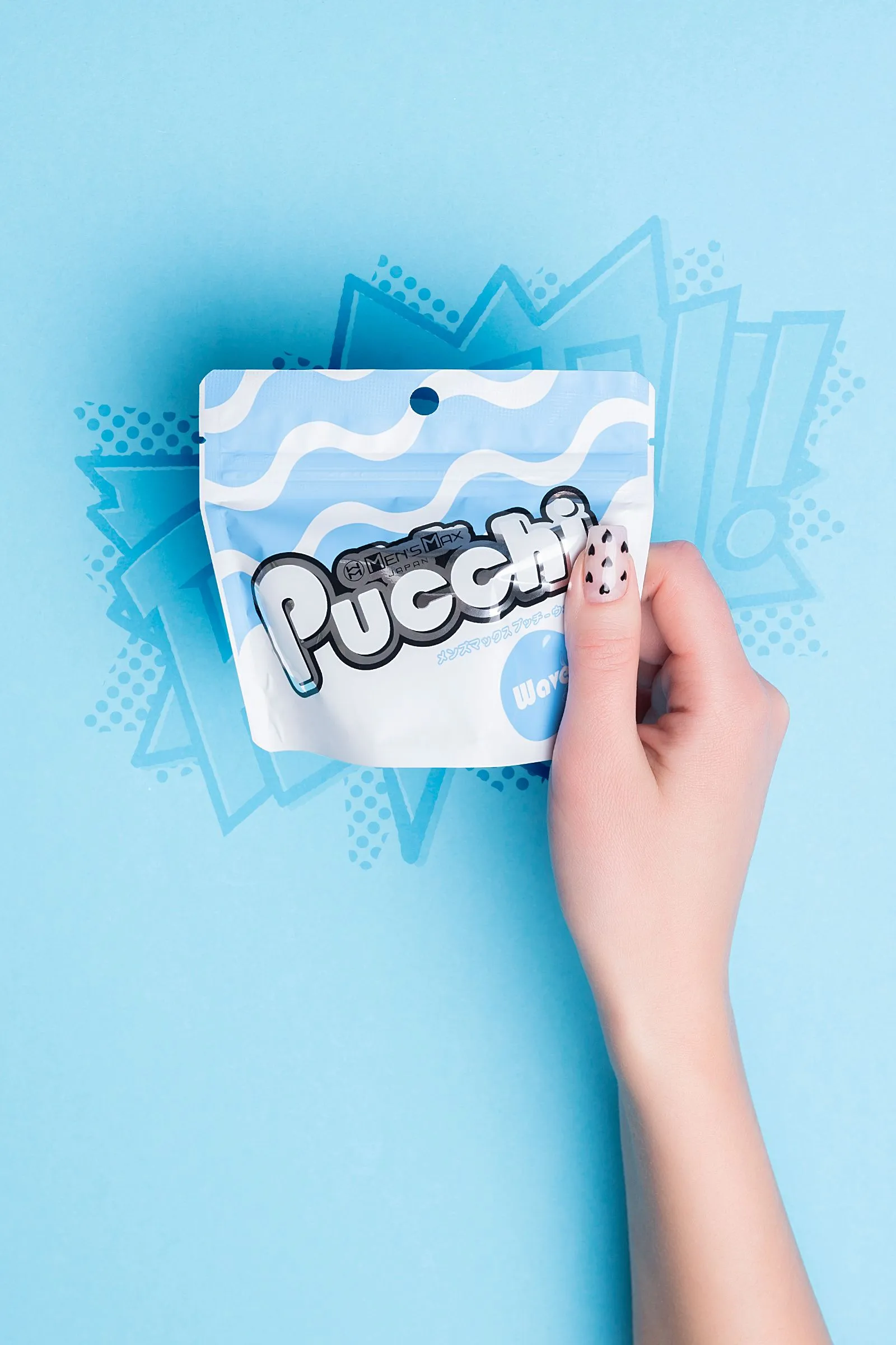 Обновленный карманный мастурбатор MensMax Pucchi Wave имеет увеличенный размер, улучшенную эластичность, более четкий рельеф, и выделяет еще больше смазки при добавлении воды. Все что вам нужно – это мастурбатор и немного воды. Самоувлажняющийся мастурбатор невероятно удобен в командировках, путешествиях и в повседневной жизни. Благодаря запатентованной японской технологии, инновационный материал +Wetch при взаимодействии с водой выделяет густой гель, усиливающий скольжение. Даже во время длительного массажа пениса гель не скатывается и не высыхает. Достаточно добавить немного воды, чтобы испытать полный спектр эмоций от интимного удовольствия. Многоразовая непрозрачная упаковка с замочком-клапаном служит мешочком для хранения. Упругий, но эластичный материал подходит для мужчин с любыми размерами пениса. Материал игрушки тактильно приятный и быстро принимает температуру тела. Чтобы усилить ощущения, добавьте теплую воду и наслаждайтесь температурными играми. MensMax Pucchi производят на новейшем оборудовании в Японии, что гарантирует качество и безопасность использования. Мастурбатор Pucchi Wave представляет собой мягкую трехъярусную елочку с одним отверстием. Внешняя сторона гладкая и нежная, а внутренний рельеф сделан из ярко выраженных зигзагов и волн. Особенно ярко он ощущается при стимуляции головки. Чем глубже проникновение, тем ощутимее стимуляция. Инструкция: Достаньте мастурбатор из упаковки и налейте в него немного воды (чайную ложку). Старайтесь не намочить внешнюю сторону игрушки, чтобы смазка не мешала вам в процессе. Распределите образовавшийся гель по внутренней поверхности девайса. Начните с массажа головки, так вы сможете получить максимальное наслаждение от рельефа и настроиться на нужный лад. Совершайте вращательные движения по часовой стрелке или против нее. Для предварительных ласк партнерши выверните мастурбатор наизнанку и наденьте на пальцы. После игр промойте Pucchi водой или средством для очистки игрушек. Когда израсходуете смазку мастурбатора, выбирайте лубриканты на водной основе.