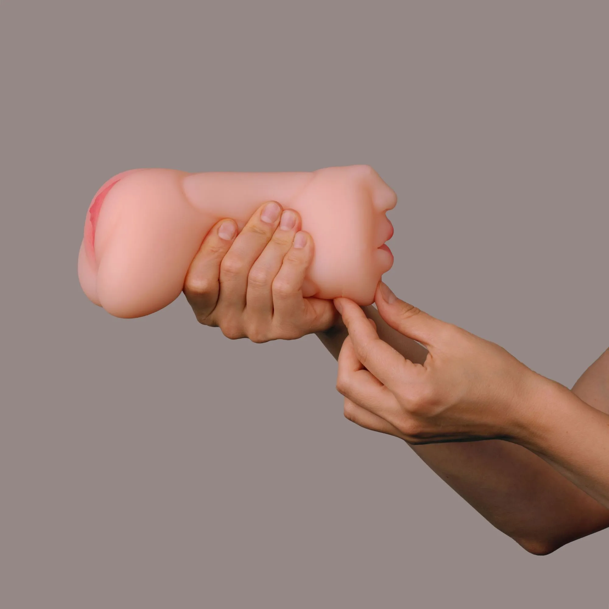 Реалистичный тройной мастурбатор для имитации оральных ласк, вагинального и анального секса. Невероятно нежный и приятный на ощупь материал создает иллюзию контакта с человеческой кожей. Ощущения от проникновения приближены к естественным. Благодаря эластичности материала использовать мастурбатор комфортно для любого размера пениса. Растягивается и сжимается - регулируйте тугое или расслабленное проникновение своей рукой. С одной стороны мастурбатора прелестный ротик. С другой стороны - нежные половые губы. Внутренний рельеф насыщен выпуклостями, шариками и ребрами - все для того, чтобы почувствовать стимуляцию самых чувствительных точек и получить максимальное наслаждение. Рекомендуется использовать только с лубрикантами на водной основе.