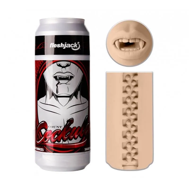 Мастурбаторы Fleshlight из серии Sex In A Can выполнены в интересном дизайне банок из-под пива и лимонада. Глядя на них, никто никогда не догадается о том, что внутри скрывается мастурбатор, способный подарить своему владельцу невероятное удовольствие. Внутренняя вставка мастурбатора Count Cockula выполнена в виде рта соблазнительного, но опасного вампира с длинными клыками. И если раньше мысль об острых зубах при оральных ласках вызывала у Вас тревогу, то эта игрушка изменит Ваше мнение, подарив море приятных ощущений. Вставка сделана из очень нежного материала Real Feel Super Skin, который максимально похож по ощущениям на настоящую кожу и хорошо тянется. А благодаря внутреннему рельефному каналу Вы испытаете невероятно насыщенную стимуляцию, в то время как мечтаете о безумных сексуальных приключениях в компании обольстительного вампира.