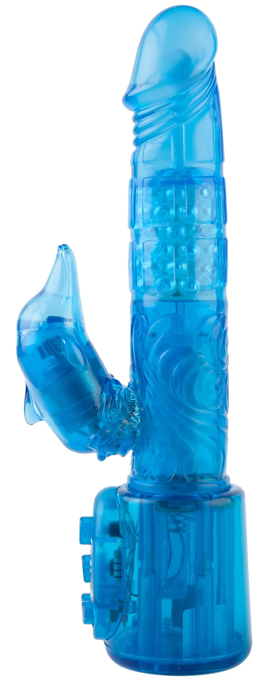 Многофункциональный вибратор создан для нежной стимуляции клитора отростком в форме «дельфина». Обладает функцией ротации и 2 скоростями для клиторальной стимуляции. Выполнен из ПВХ.
